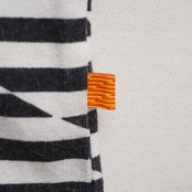 ブラック×ホワイトのジグザグ柄が特徴で、シンプルながらアート感のある一枚。ユニセックスで着用可能です。