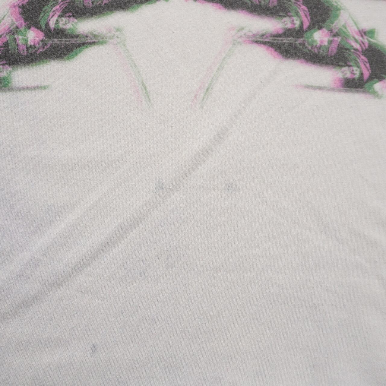 フロントには左右対称に配置されたインパクトあるグラフィックが施され、モード感とストリート感を両立。ホワイトボディに映えるカラーで、コーディネートの主役になる一着です。ゆったりしたXLサイズでユニセックスに着用可能。