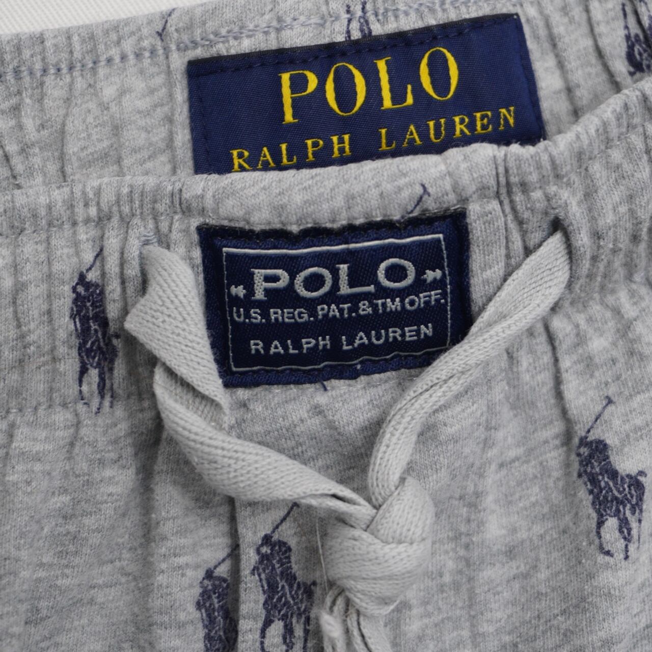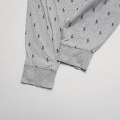 柔らかいライトグレーにネイビーのポニー刺繍を散りばめた、落ち着いた雰囲気の総柄デザイン。