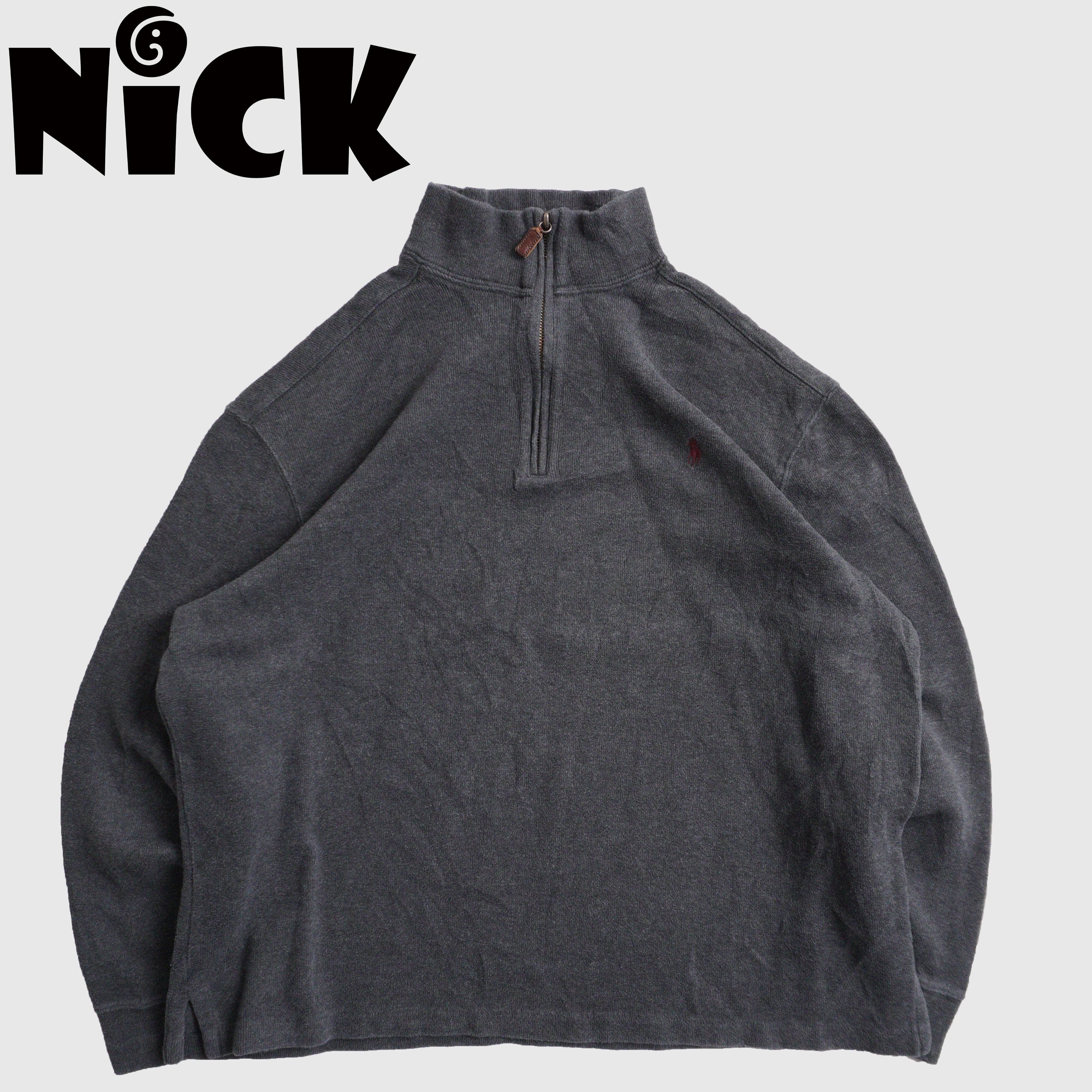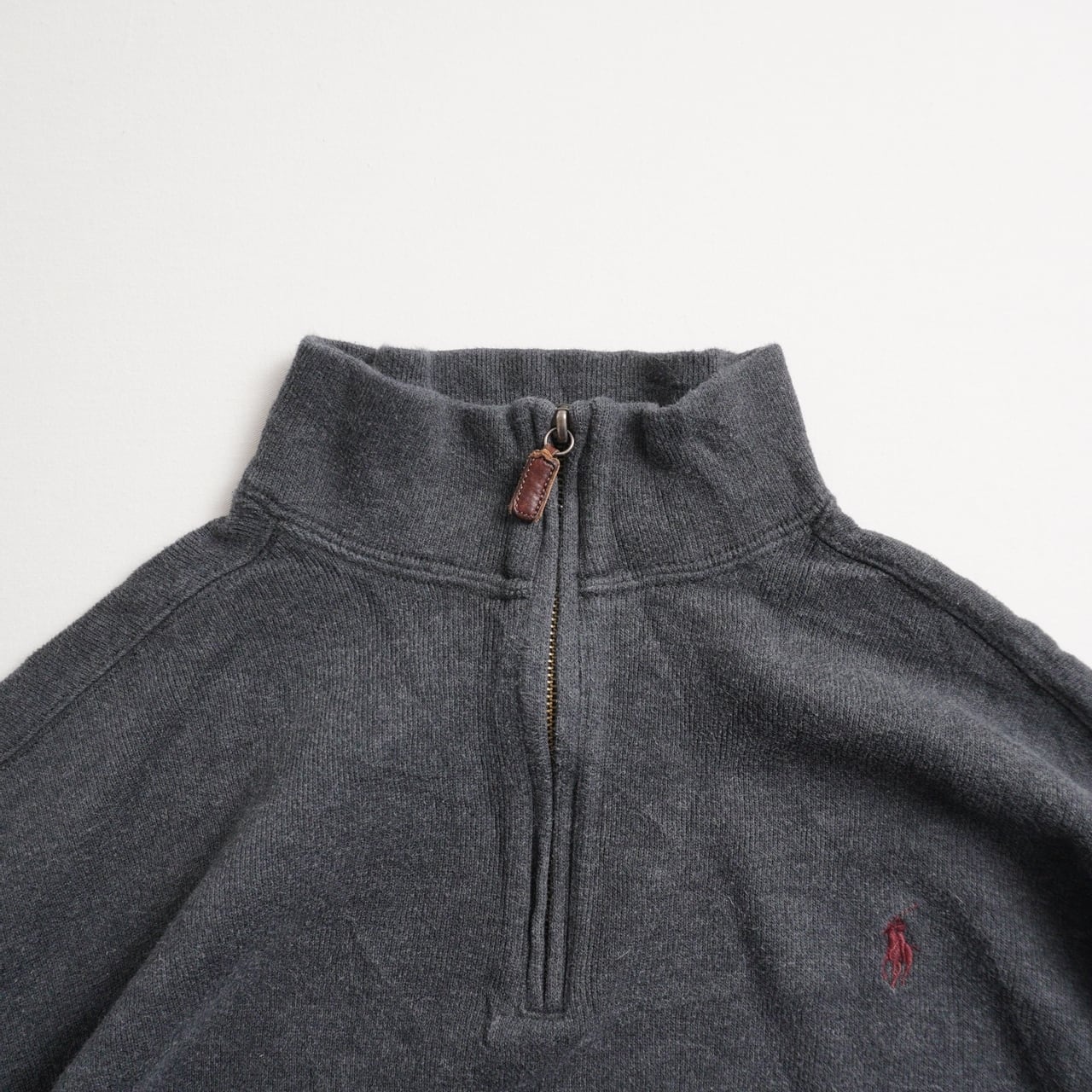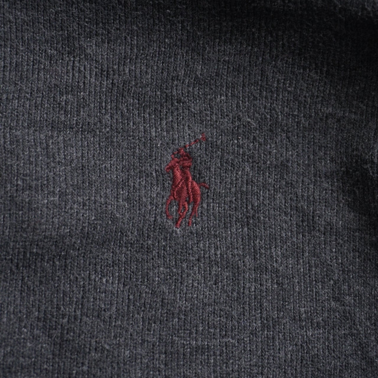 チャコールグレーの落ち着いた色味に、胸元のワンポイントポニーがさりげなく効いた一枚です。