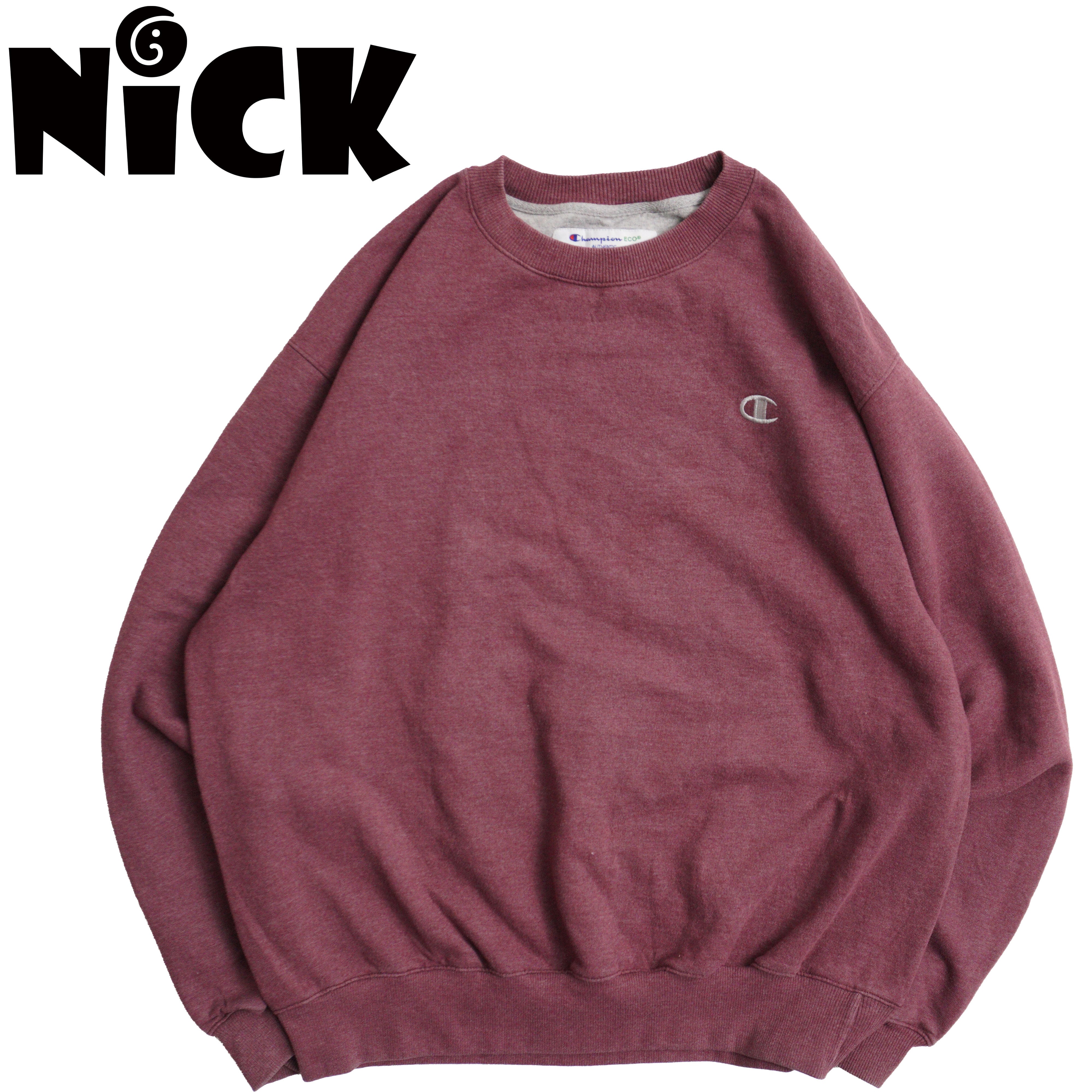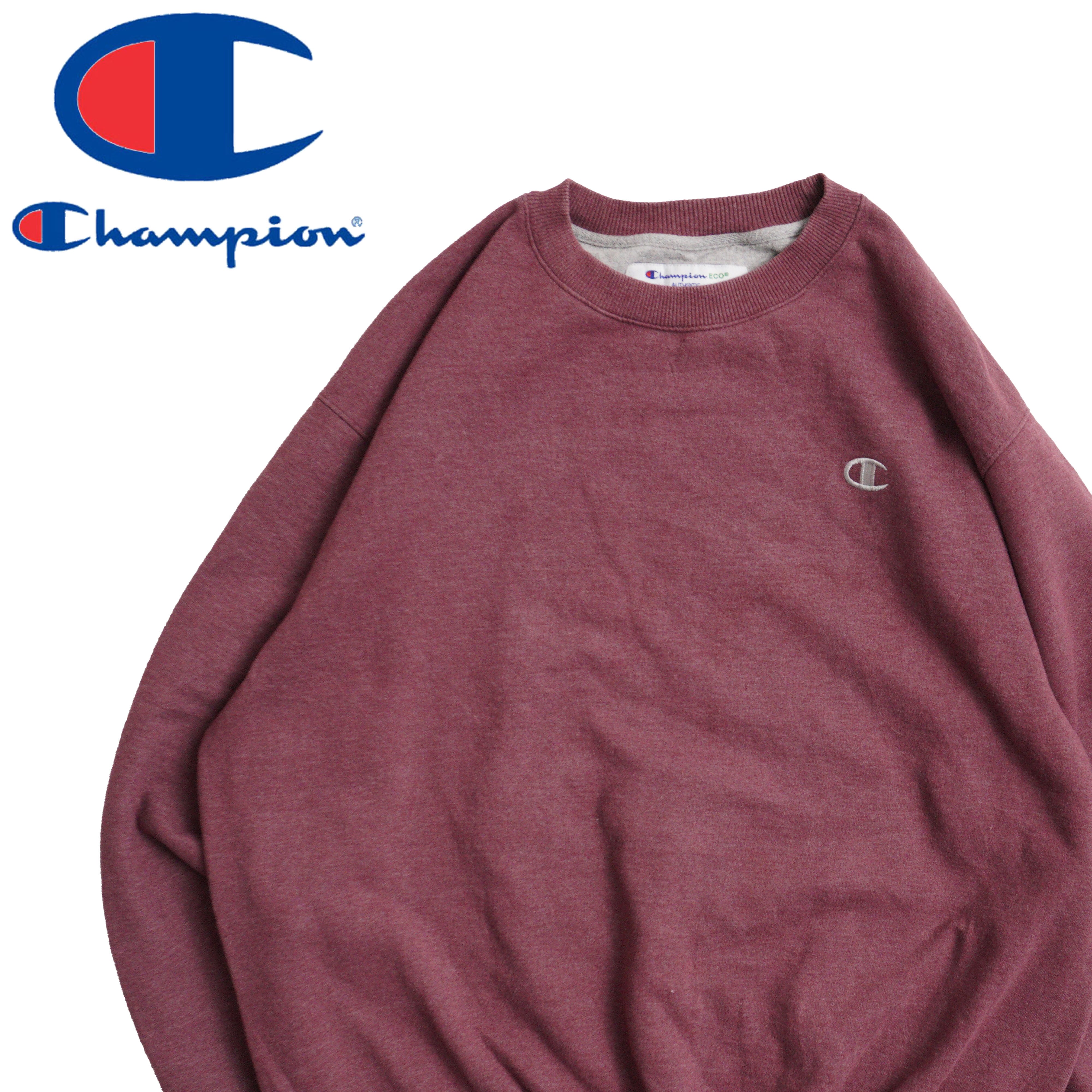 落ち着いたボルドーカラーが印象的なChampionのクルーネックスウェット。
