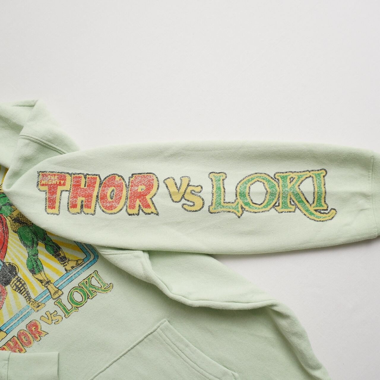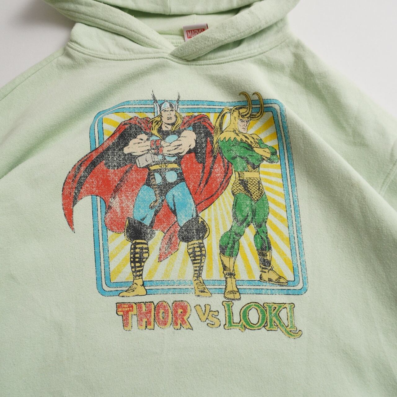 マーベルの人気キャラクター、ソーとロキが対峙したインパクトあるプリント。