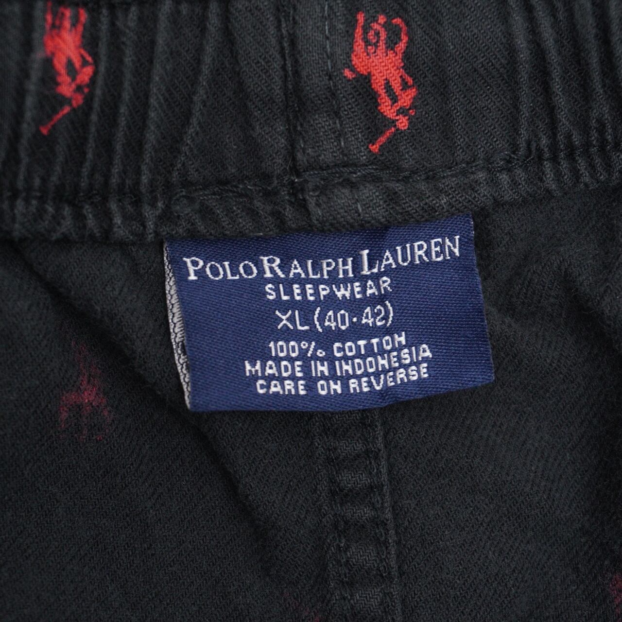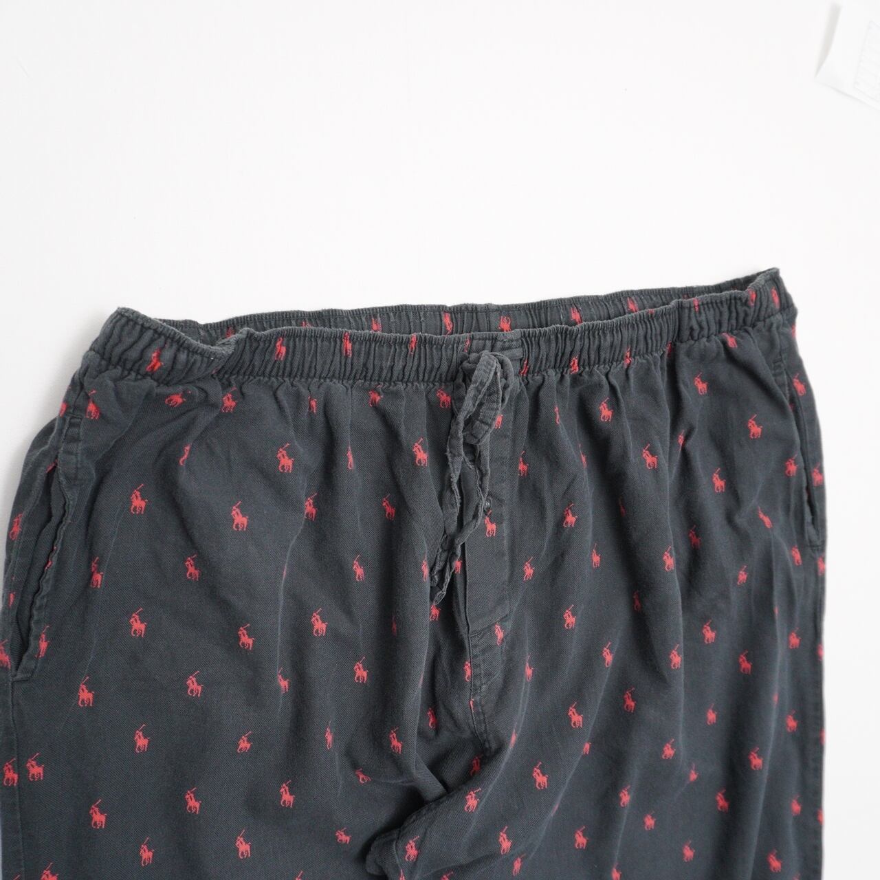 ブラックベースに赤のポニーロゴが散りばめられた、Polo Ralph Laurenのスリープウェア。