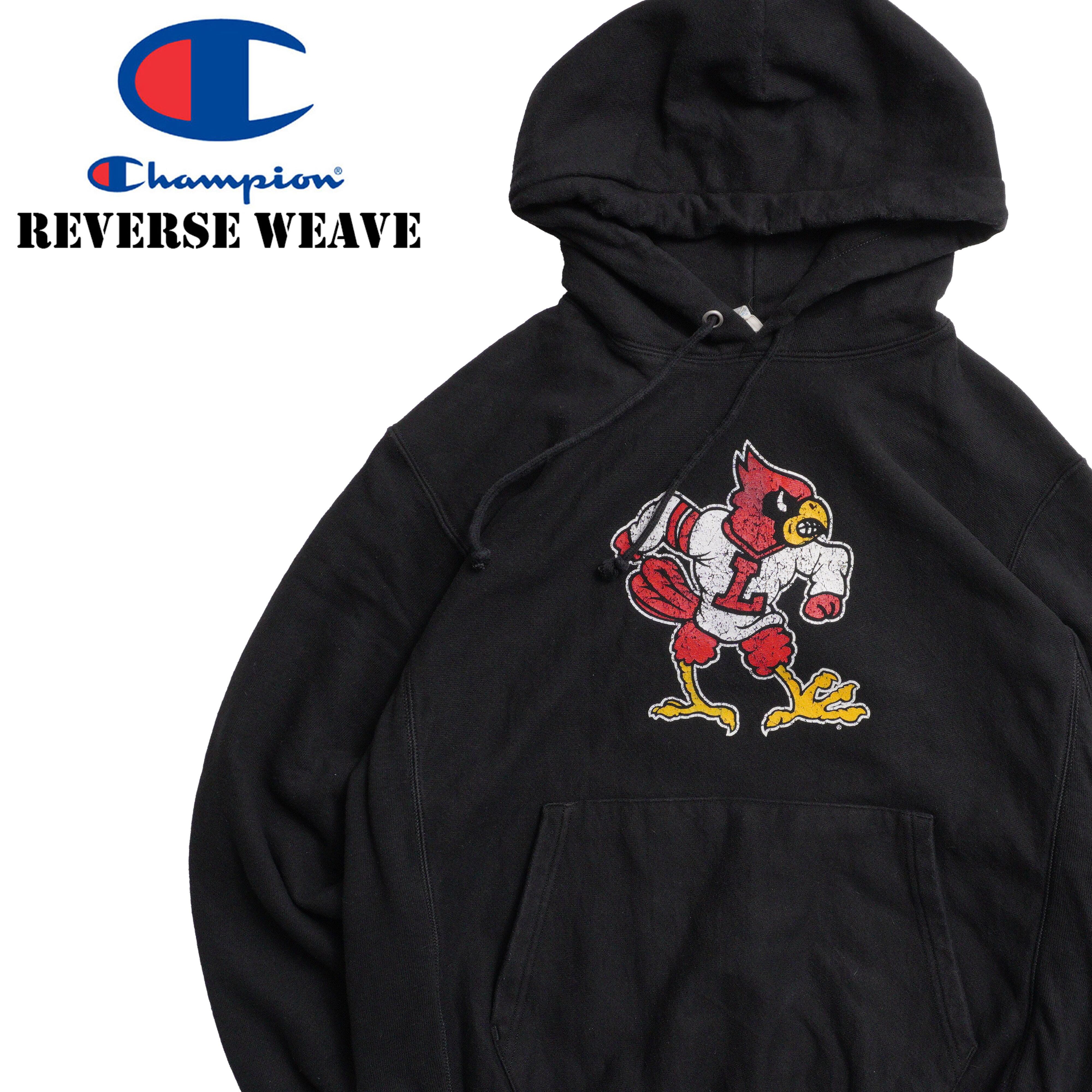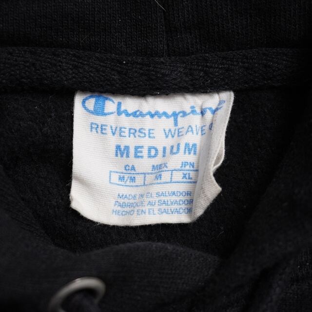 Champion リバースウィーブ ブラック カレッジキャラクタープリント パーカー Mサイズ