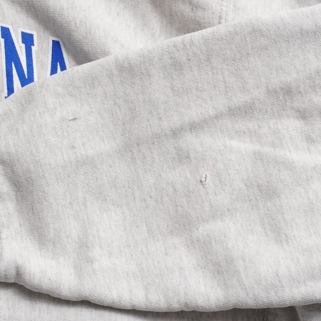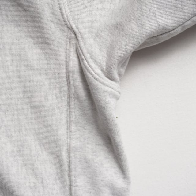オリジナルリバースウィーブらしい厚みと、グレーボディ×ブループリントの王道配色。
