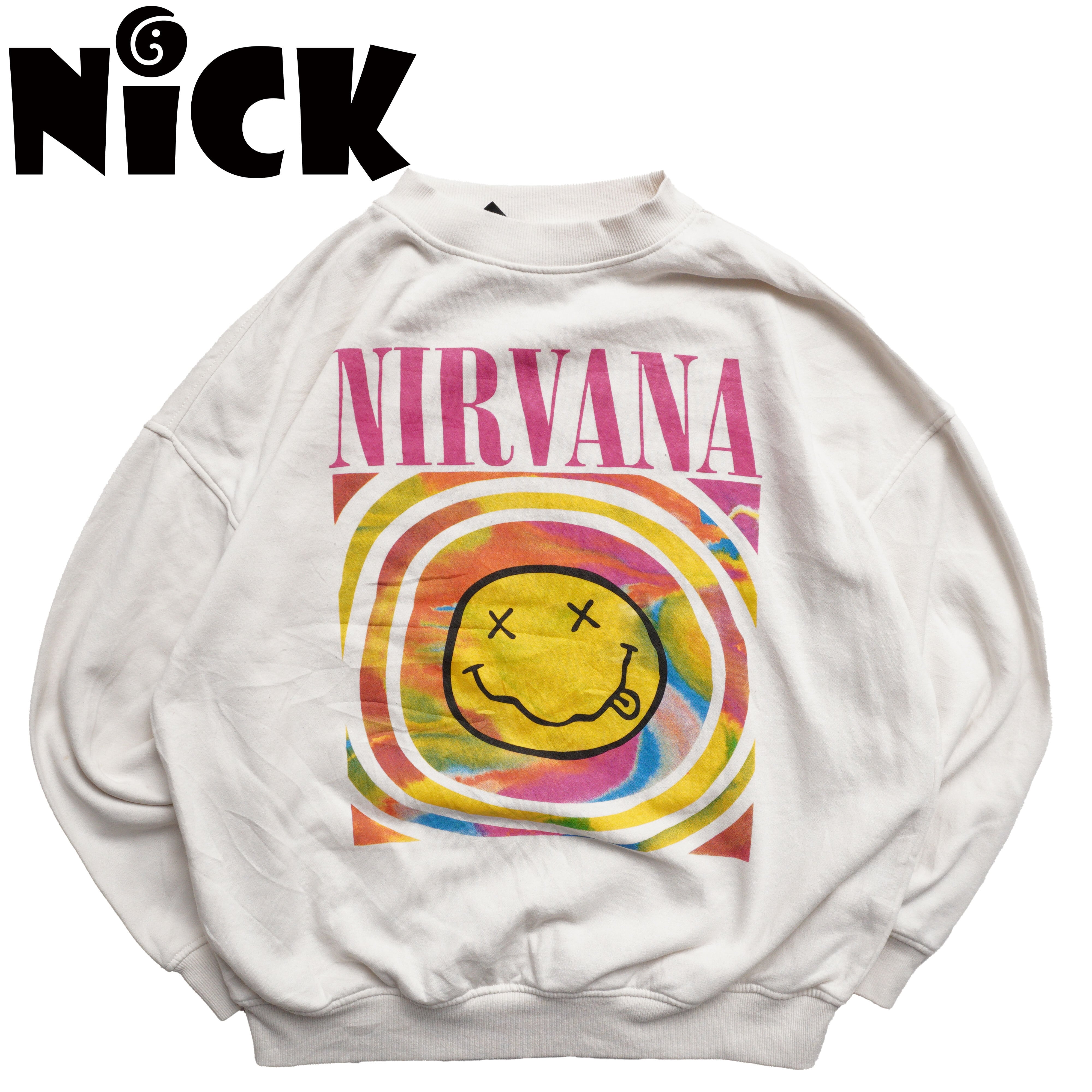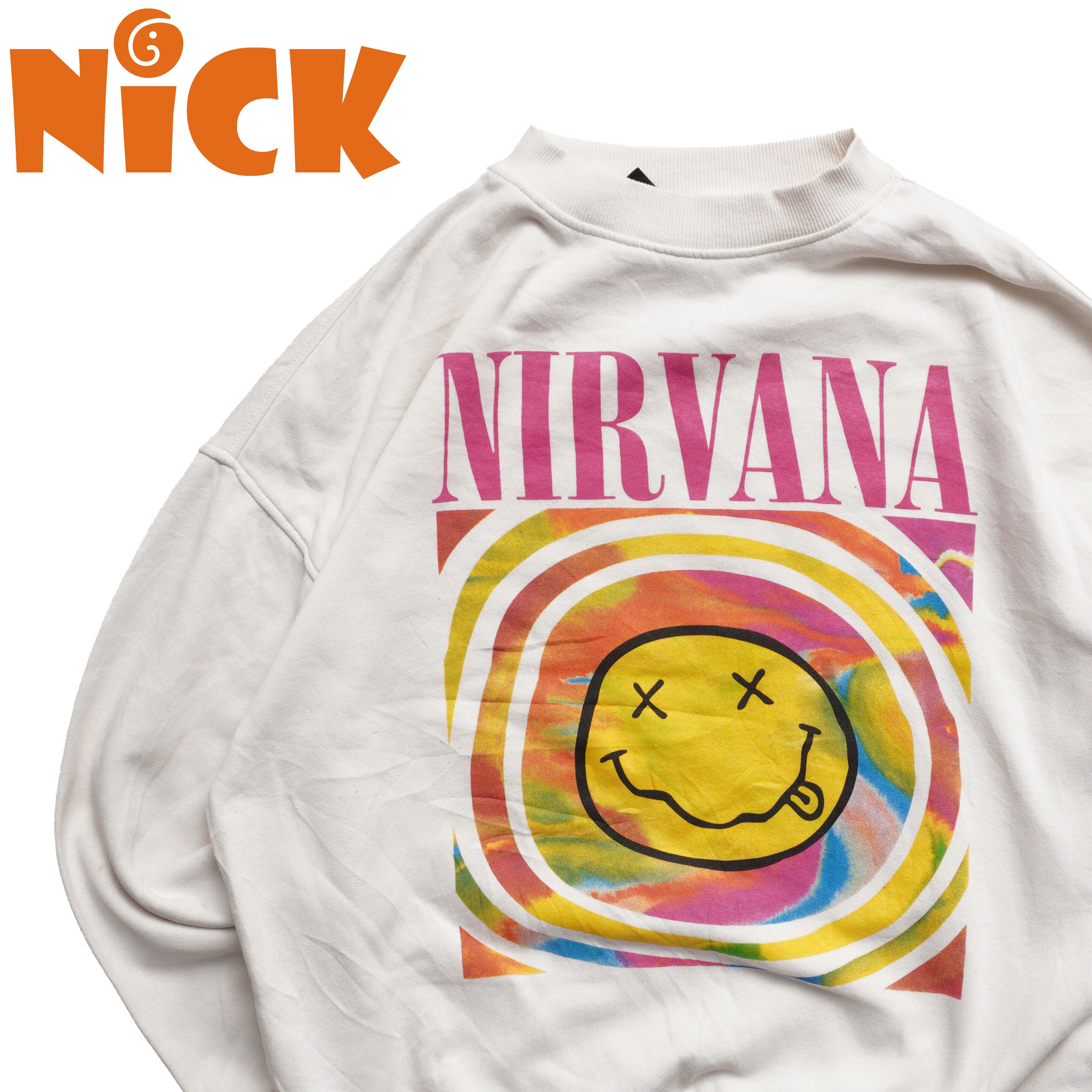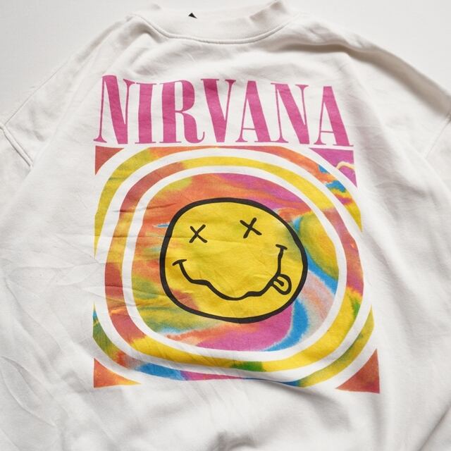 NIRVANAスマイルロゴを大胆に配したバンドスウェット。