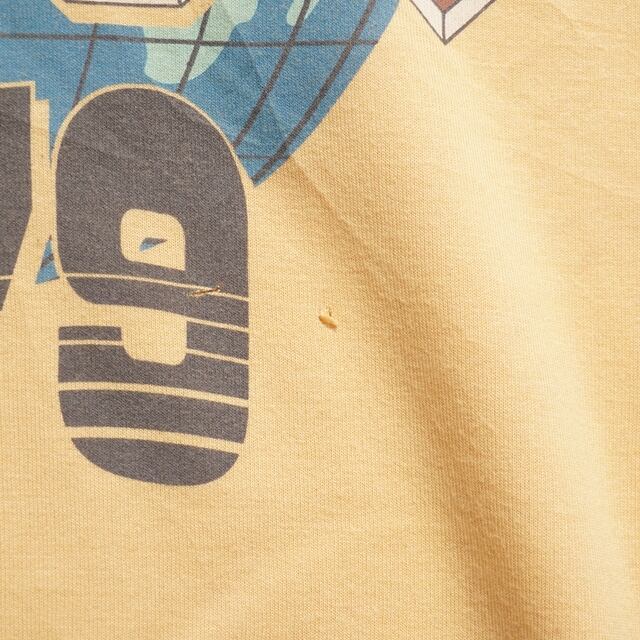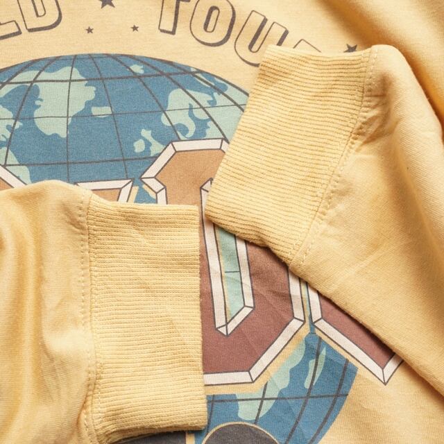 くすみイエローに地球モチーフのグラフィックが映える一枚。