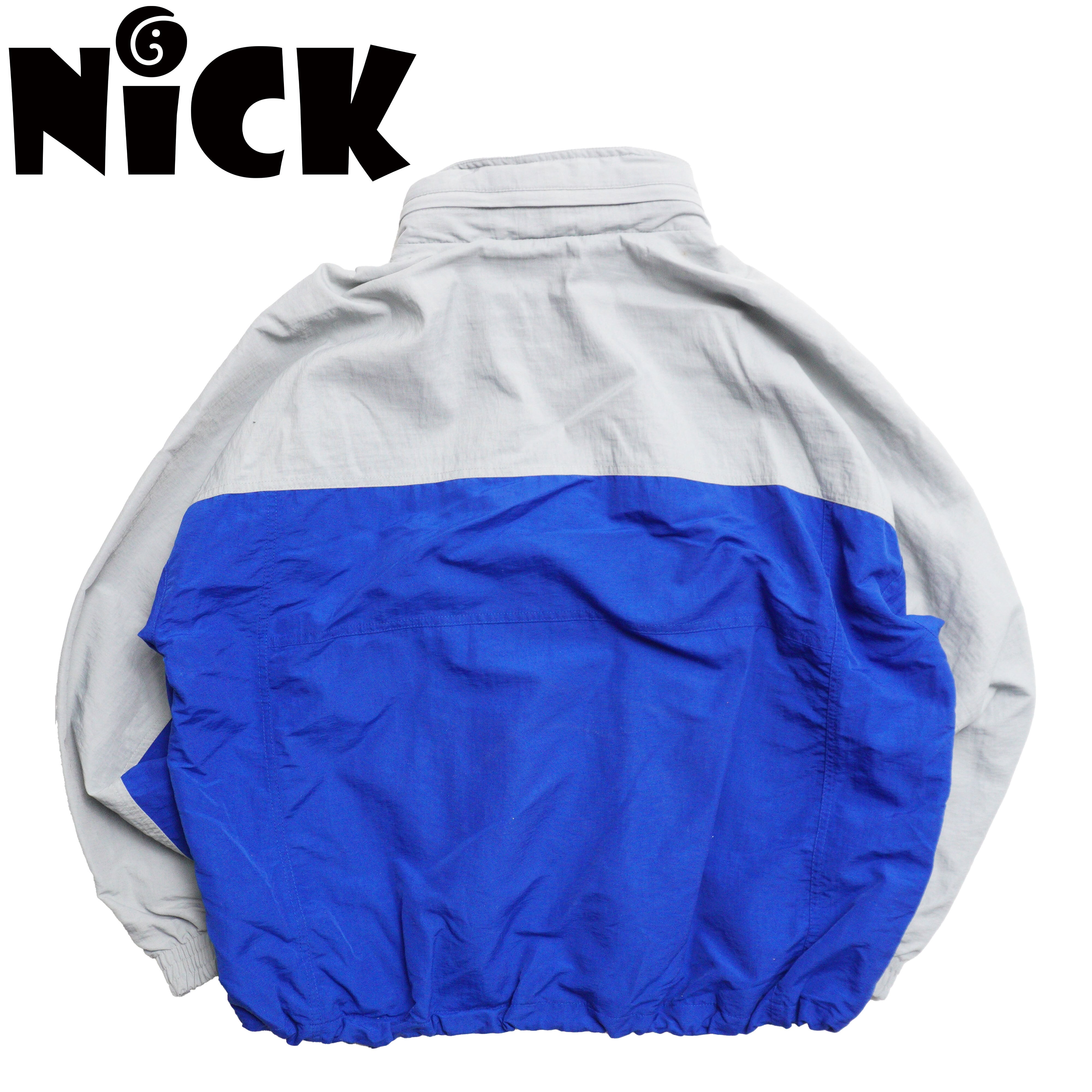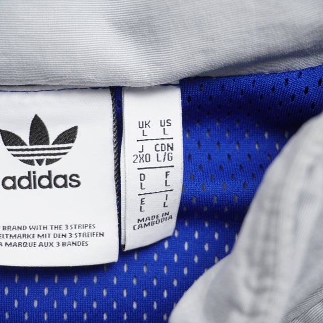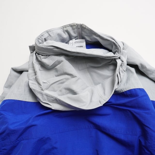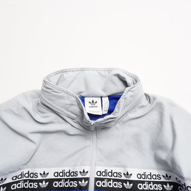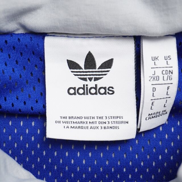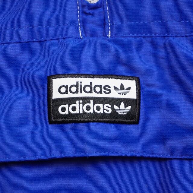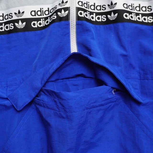 adidas Originals ハーフジップ アノラックジャケット グレー×ブルー L ロゴテープ