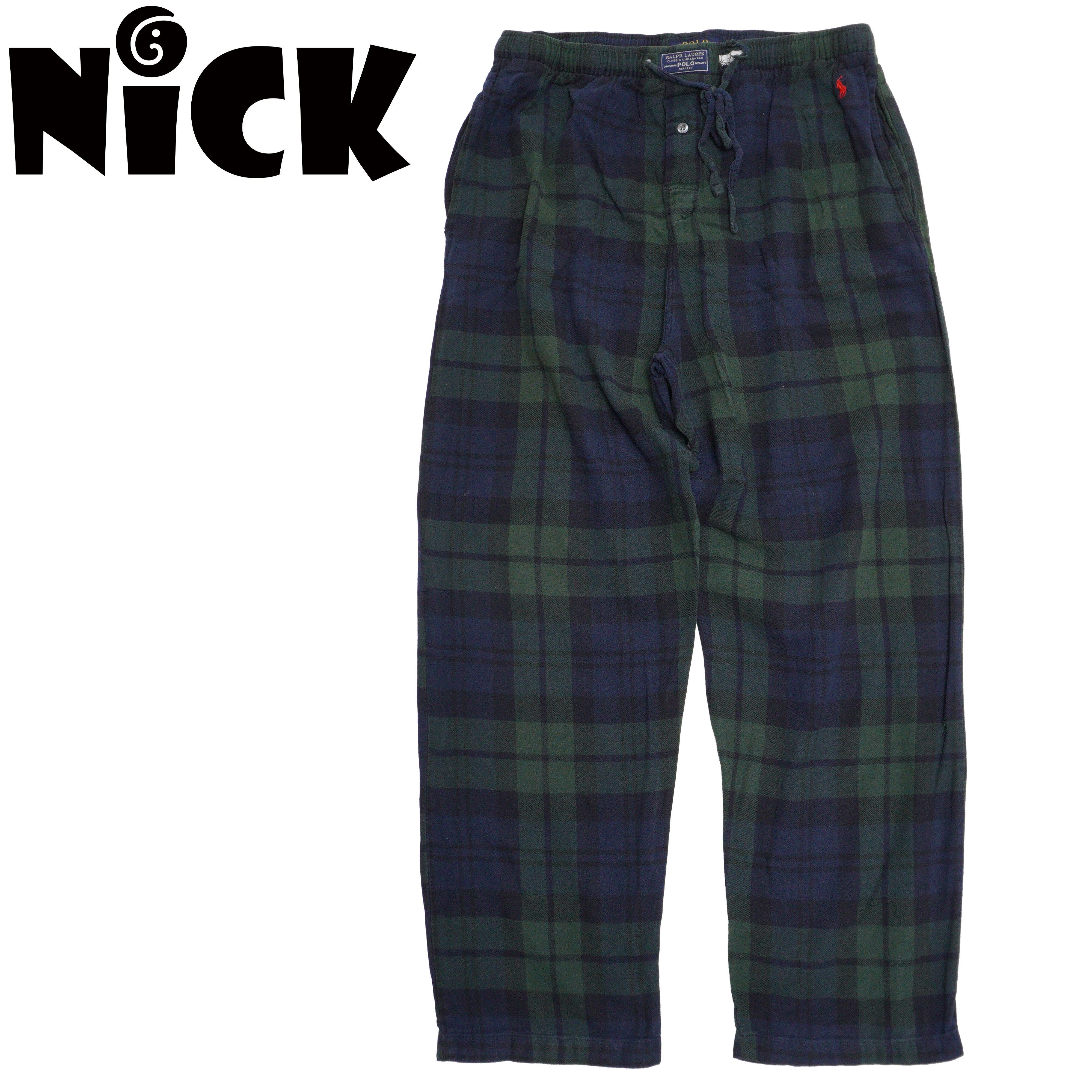 ネイビー×ダークグリーンのブラックウォッチチェックが落ち着いた雰囲気のラルフローレンのラウンジパンツ。