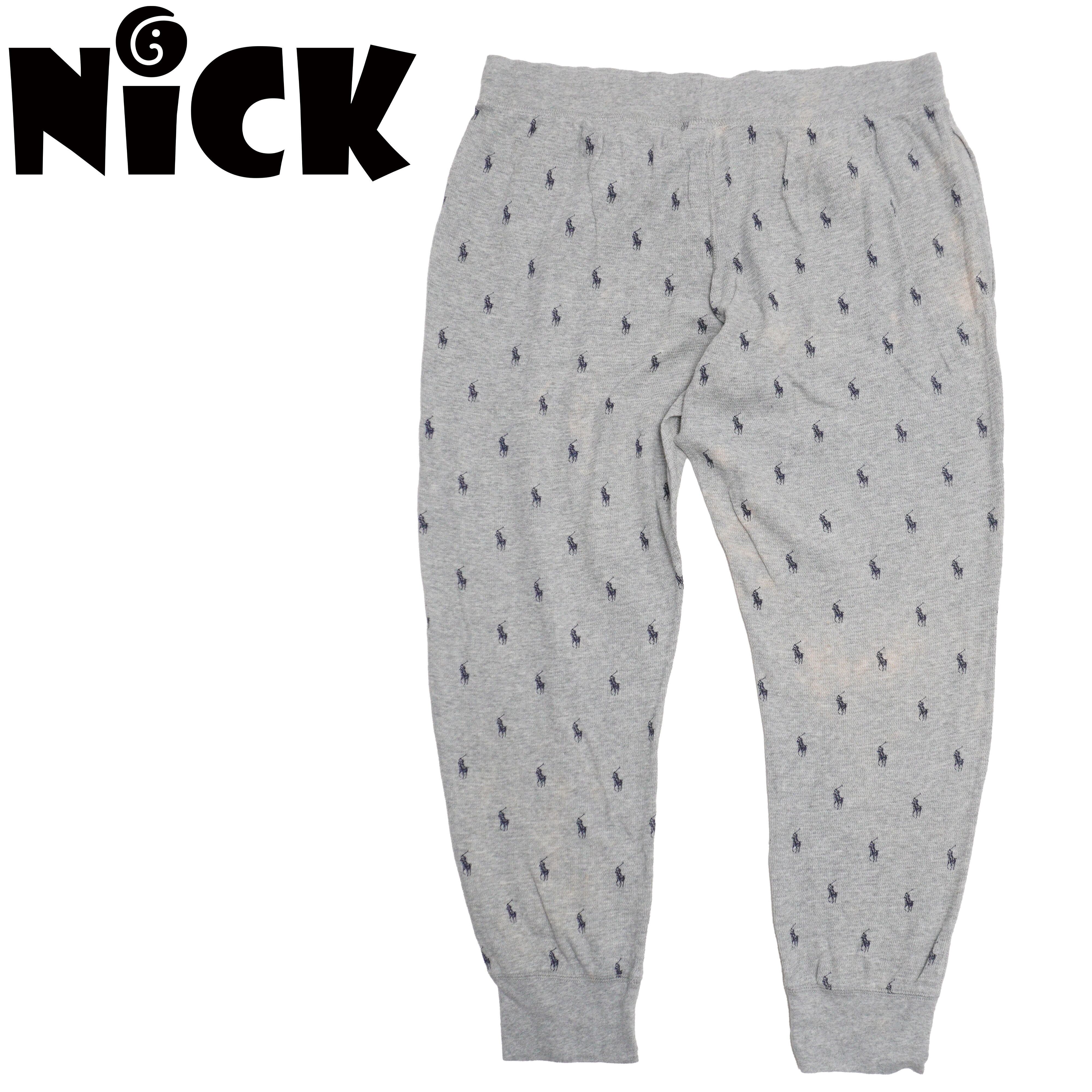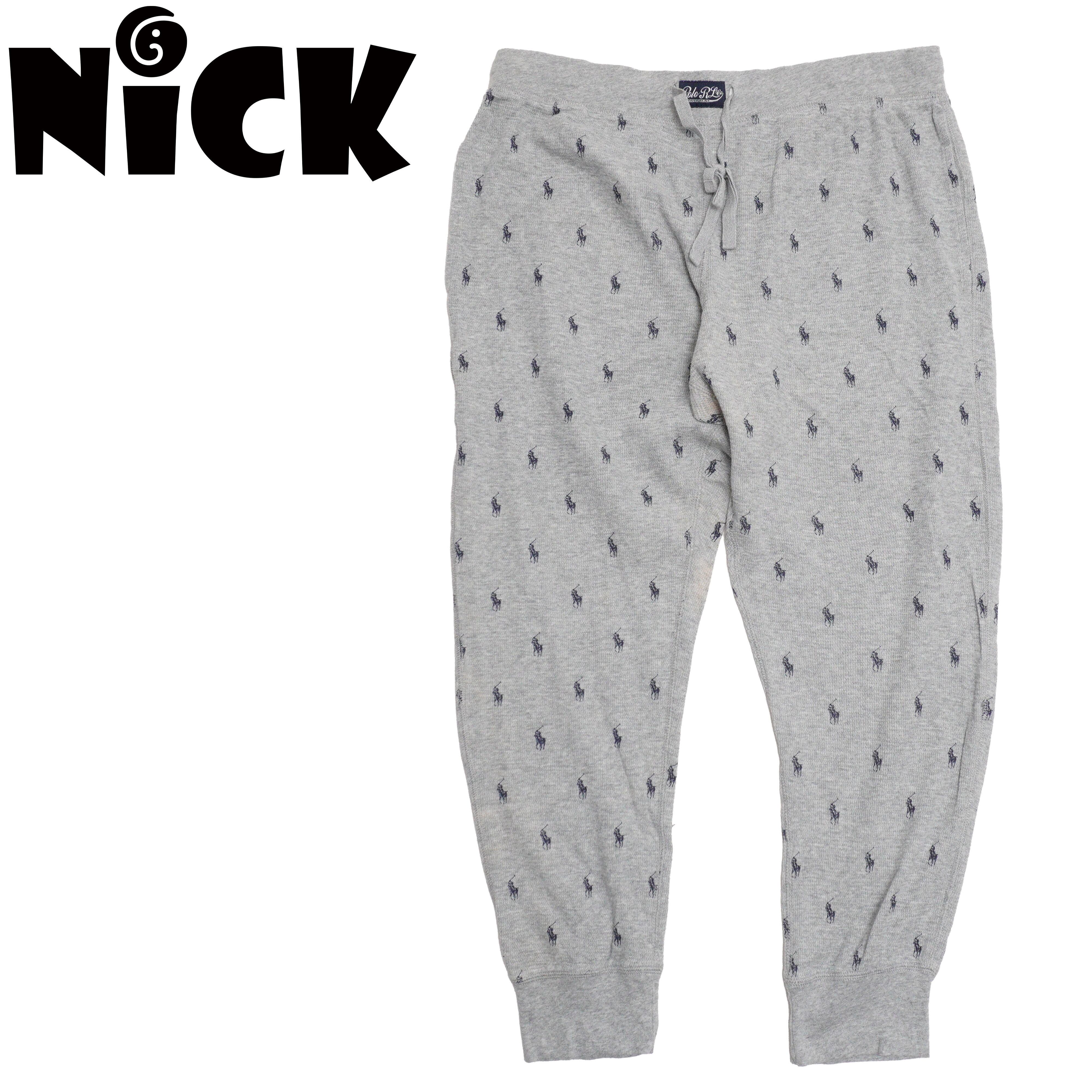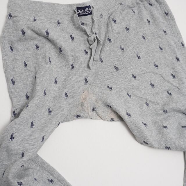 グレーベースにポロ刺繍が総柄で入ったラルフローレンのイージーパンツ。