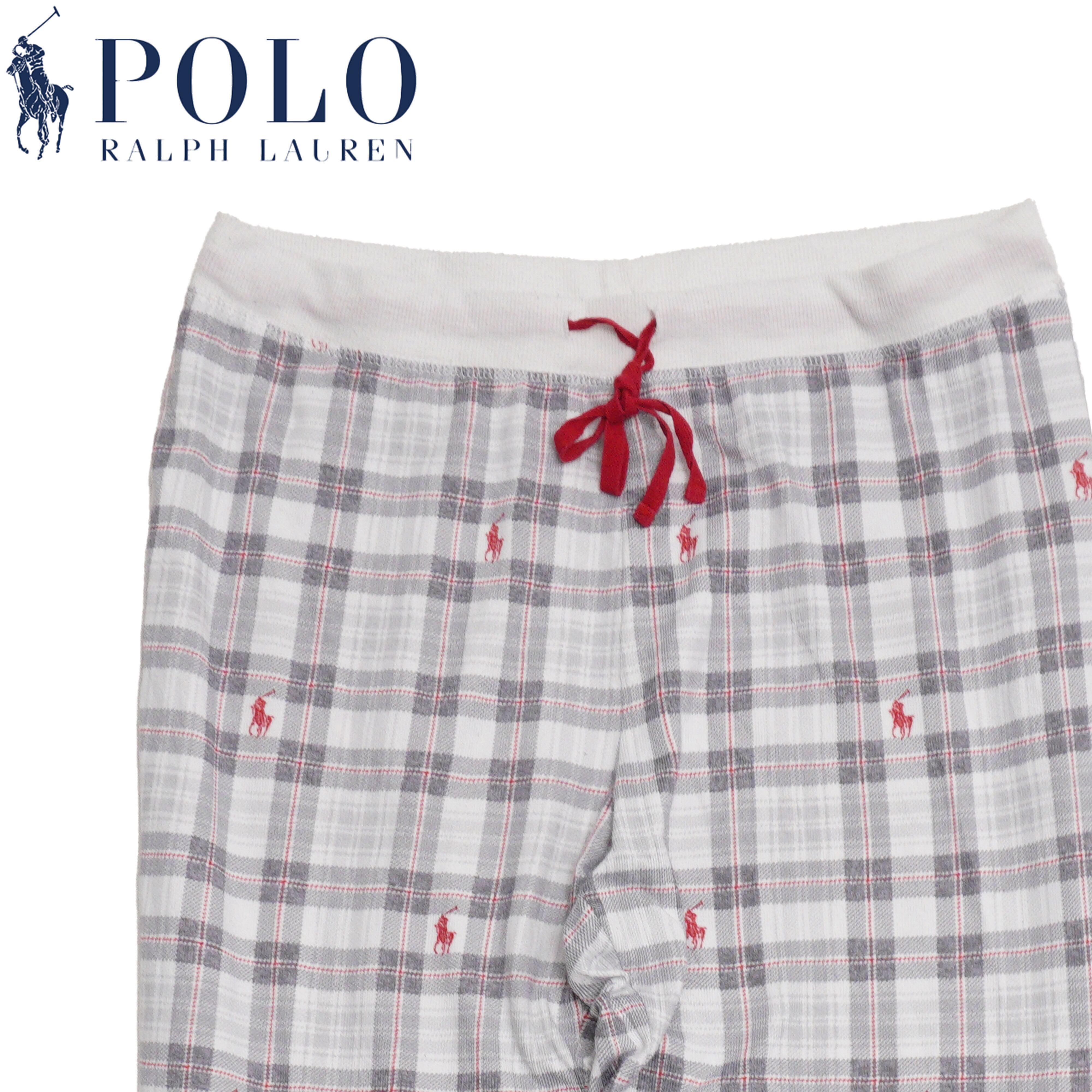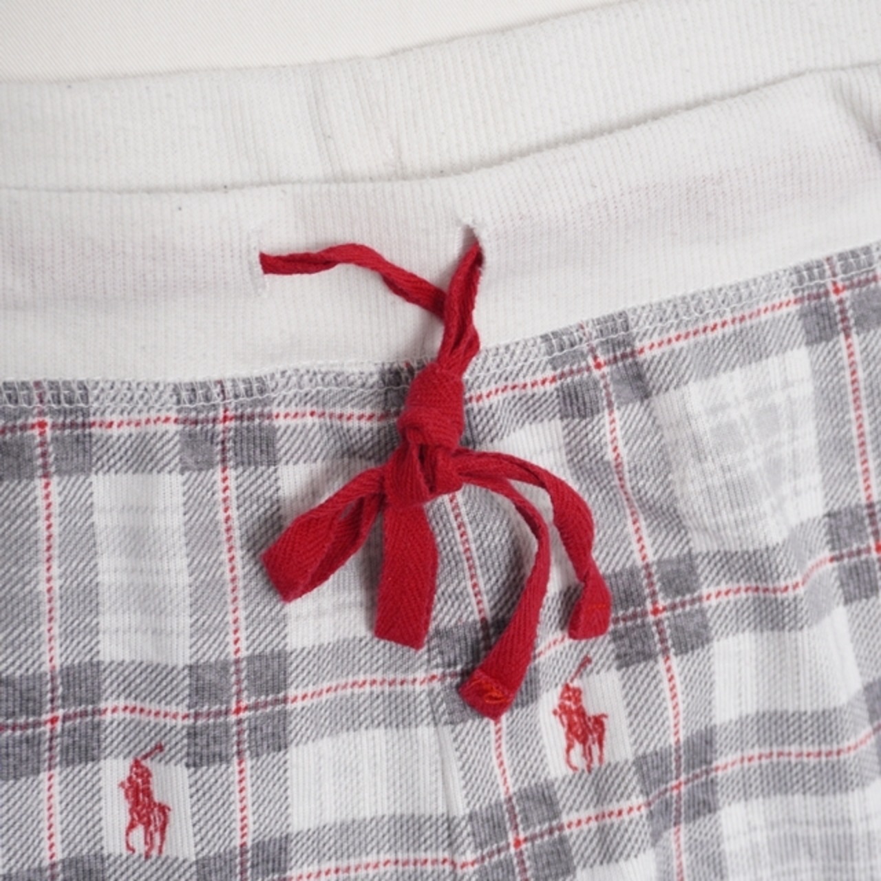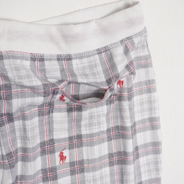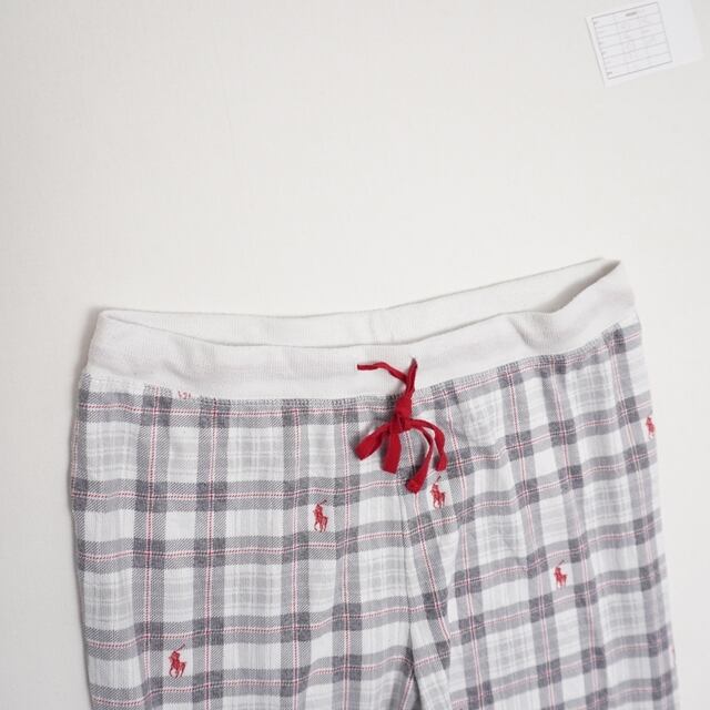 グレーっぽいホワイトをベースにレッドラインが入ったタータンチェック柄のラルフローレンのイージーパンツ。