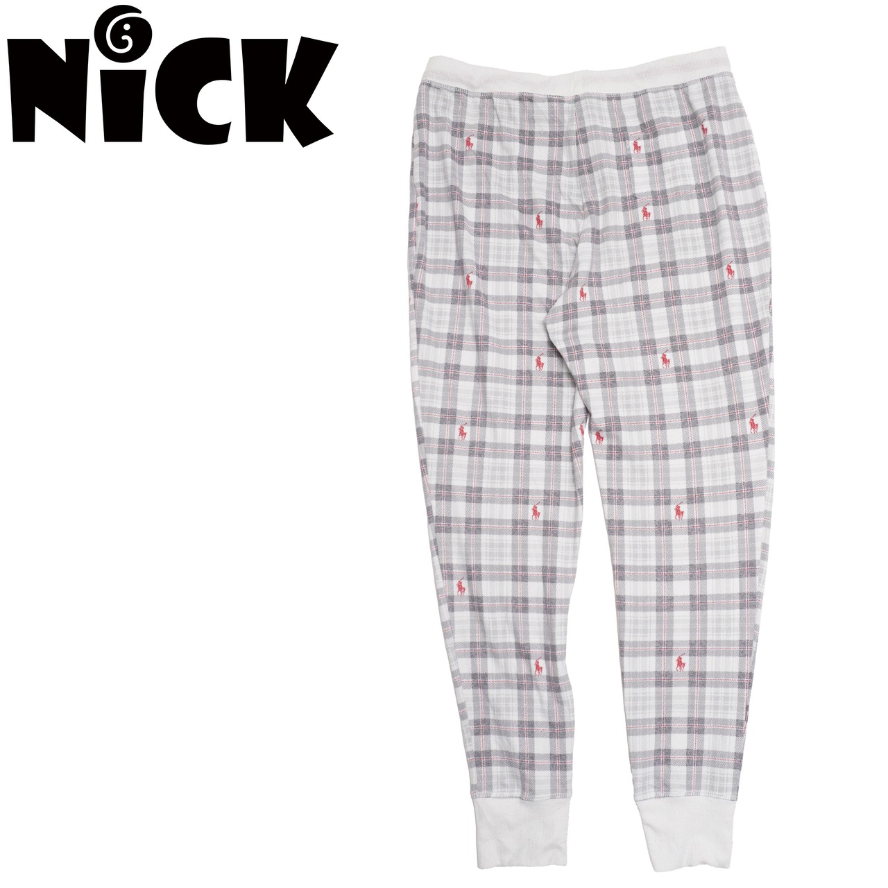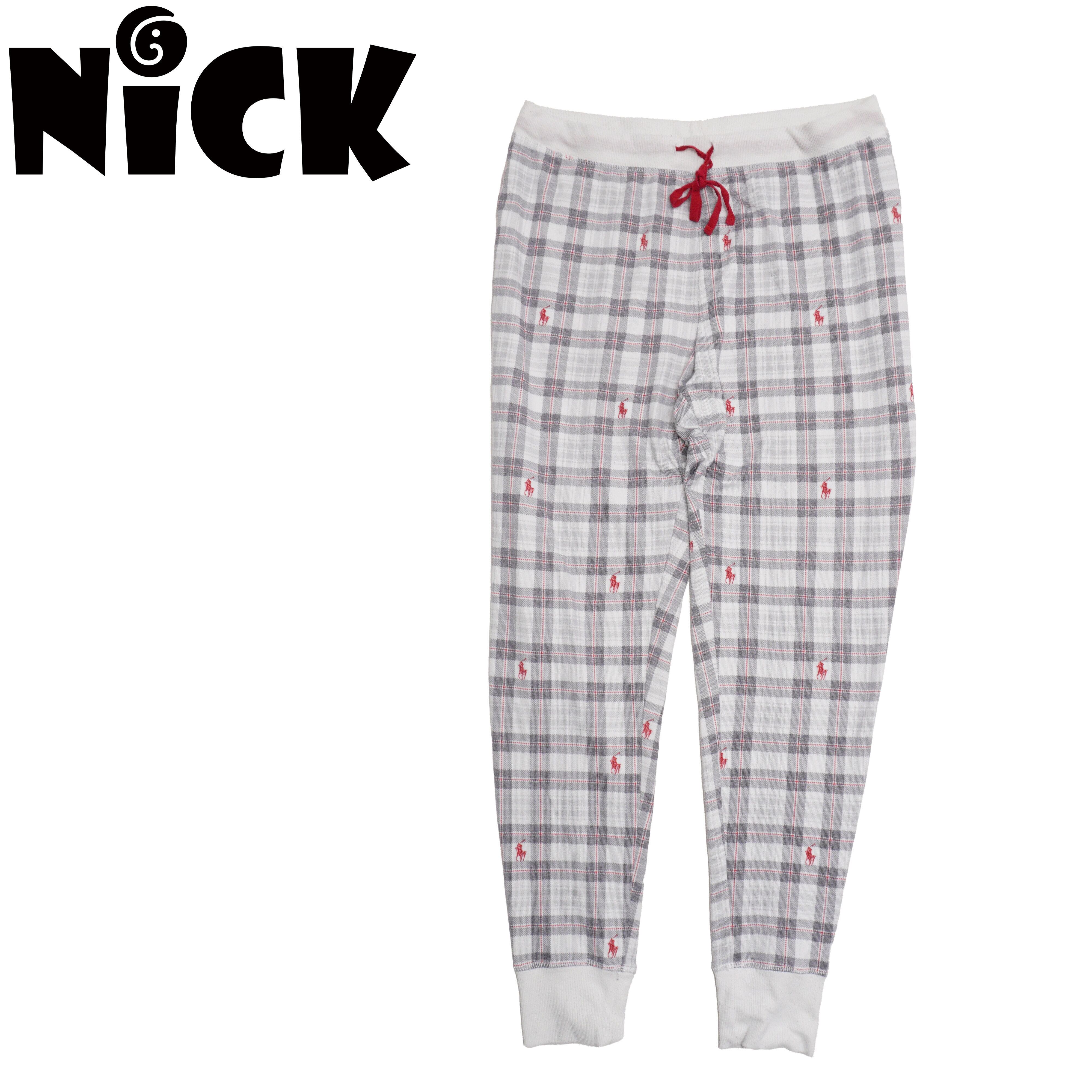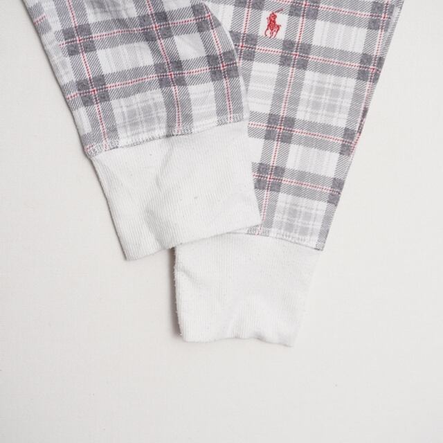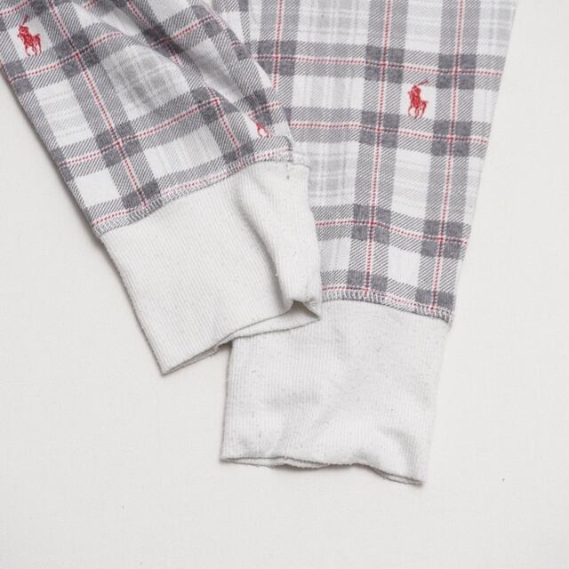 グレーっぽいホワイトをベースにレッドラインが入ったタータンチェック柄のラルフローレンのイージーパンツ。