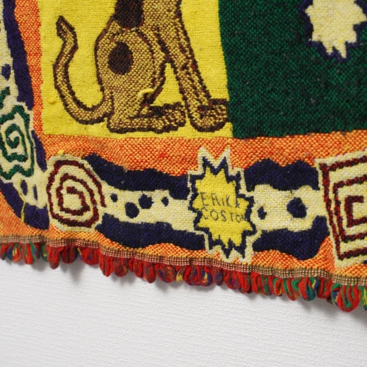USA製アクリルの織りとフリンジが雰囲気よく、インテリアのアクセントに。