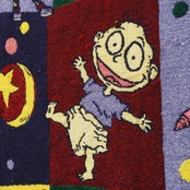 アメリカの人気アニメ、ニコロデオンの番組「ラグラッツ」のキャラクターが描かれた90sらしいデザインラグ。
