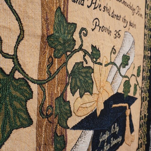 クロスや聖書の一節が織り込まれた、“誰かの人生の一部”の節目を飾った一点物のストーリーを感じる一枚です。