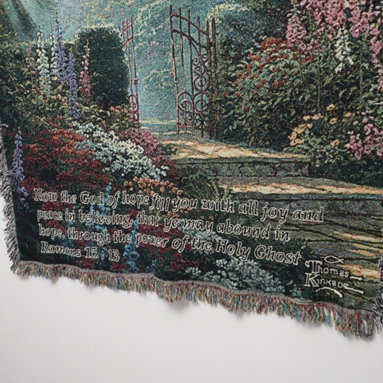 聖書の一節が織り込まれた幻想的な雰囲気で、空間に落ち着きと温かみを与えてくれる一枚です。