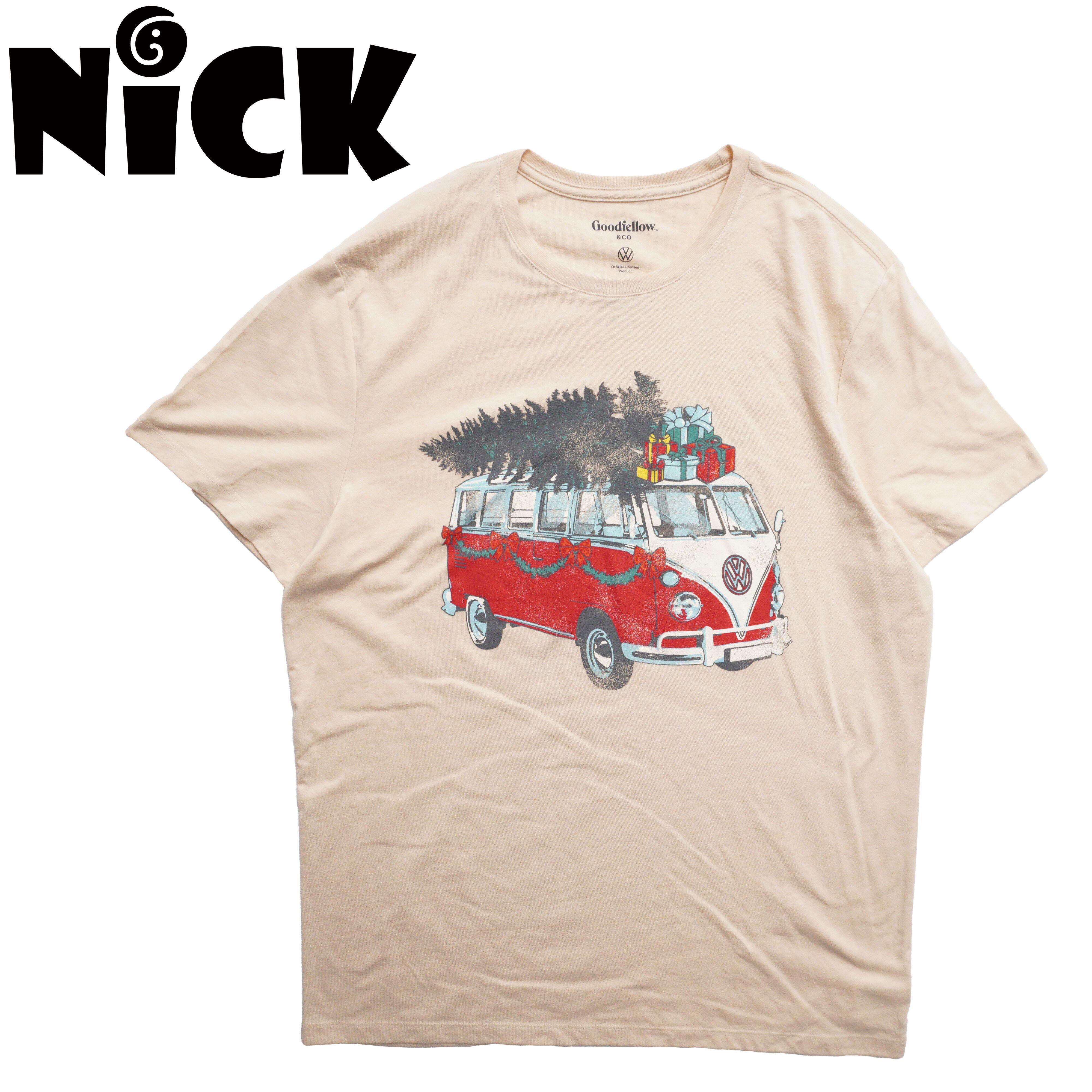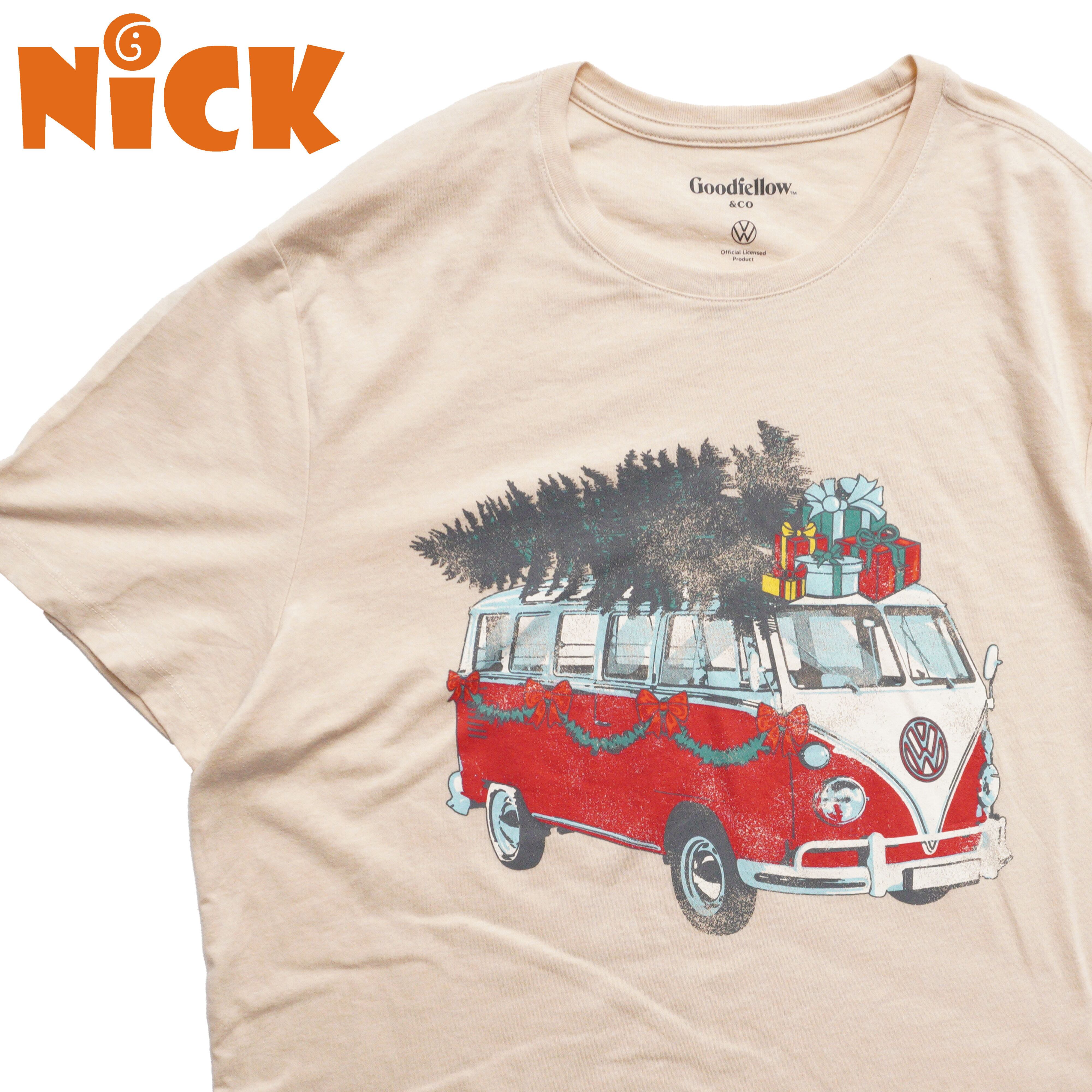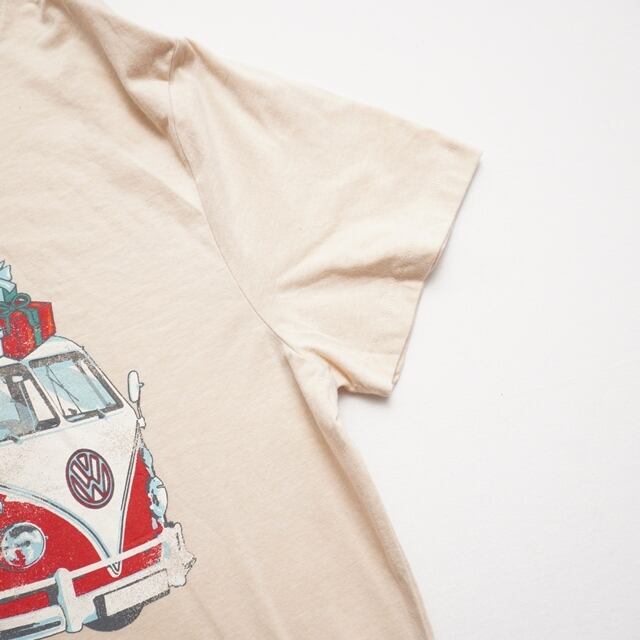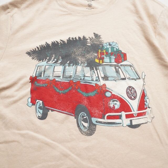 フォルクスワーゲン ワーゲンバス プリントTシャツ ベージュ 車デザイン クリスマス