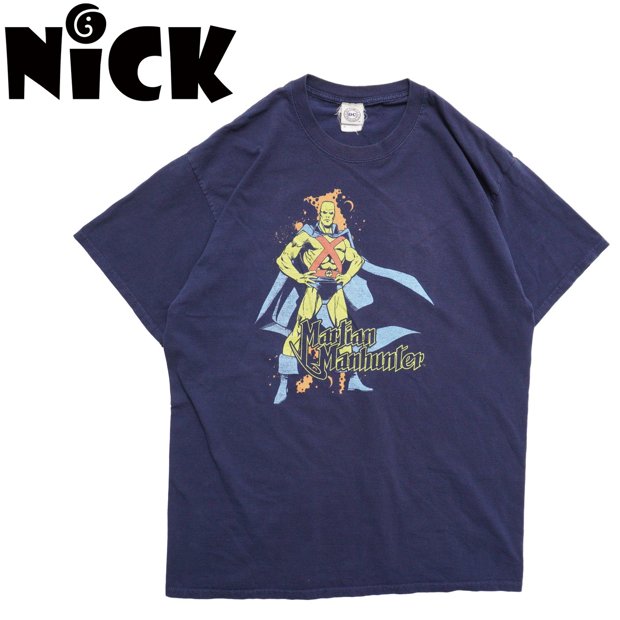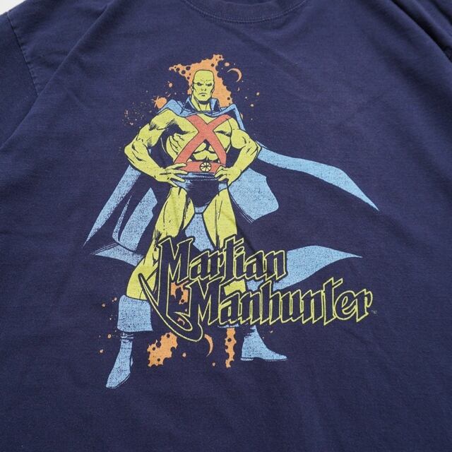 ネイビーボディにマーシャンマンハンターの存在感あるグラフィック。DCらしいクラシックなヒーローデザインが魅力。