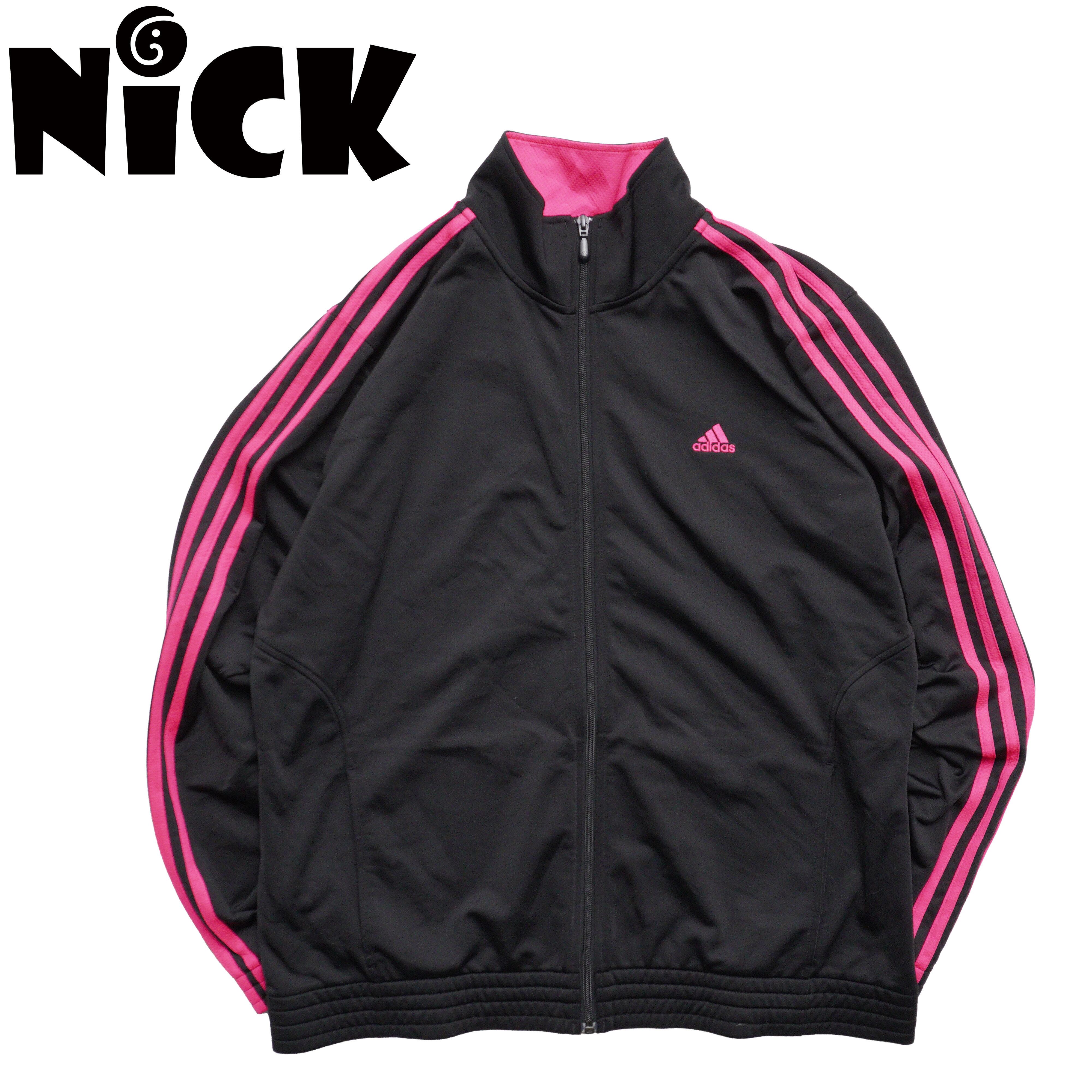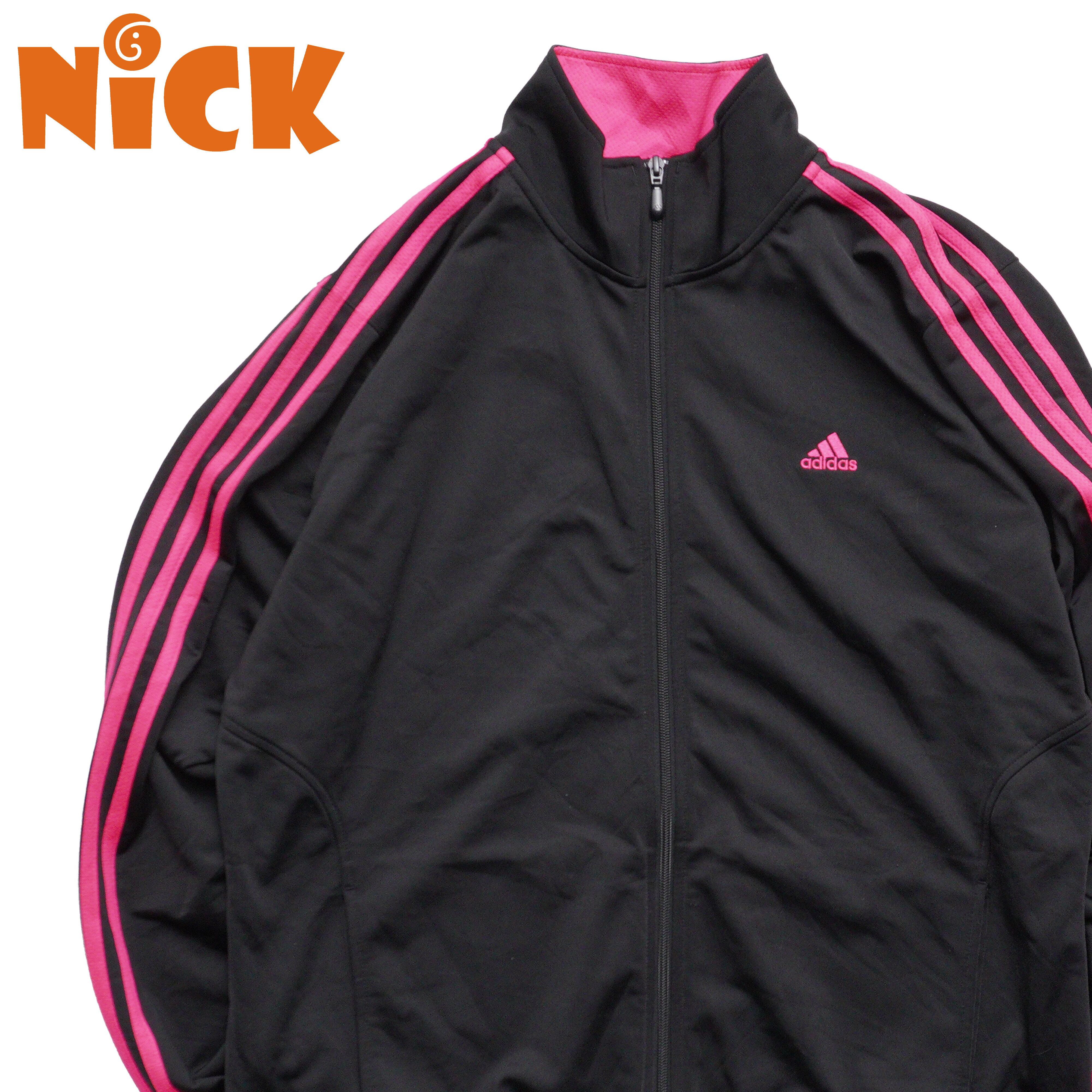 アディダス トラックジャケット ブラック ピンク ジャージ 3ライン スポーツデザイン