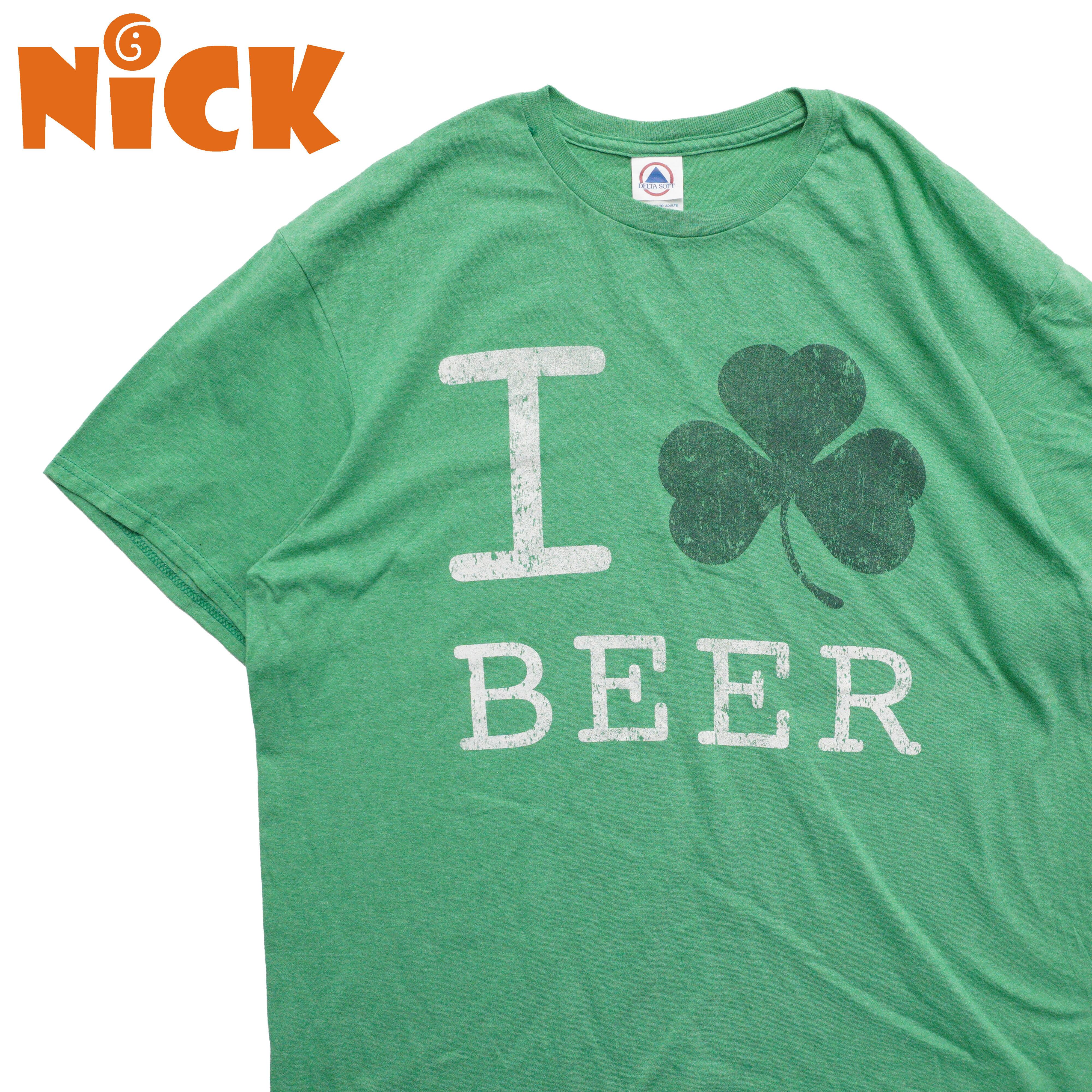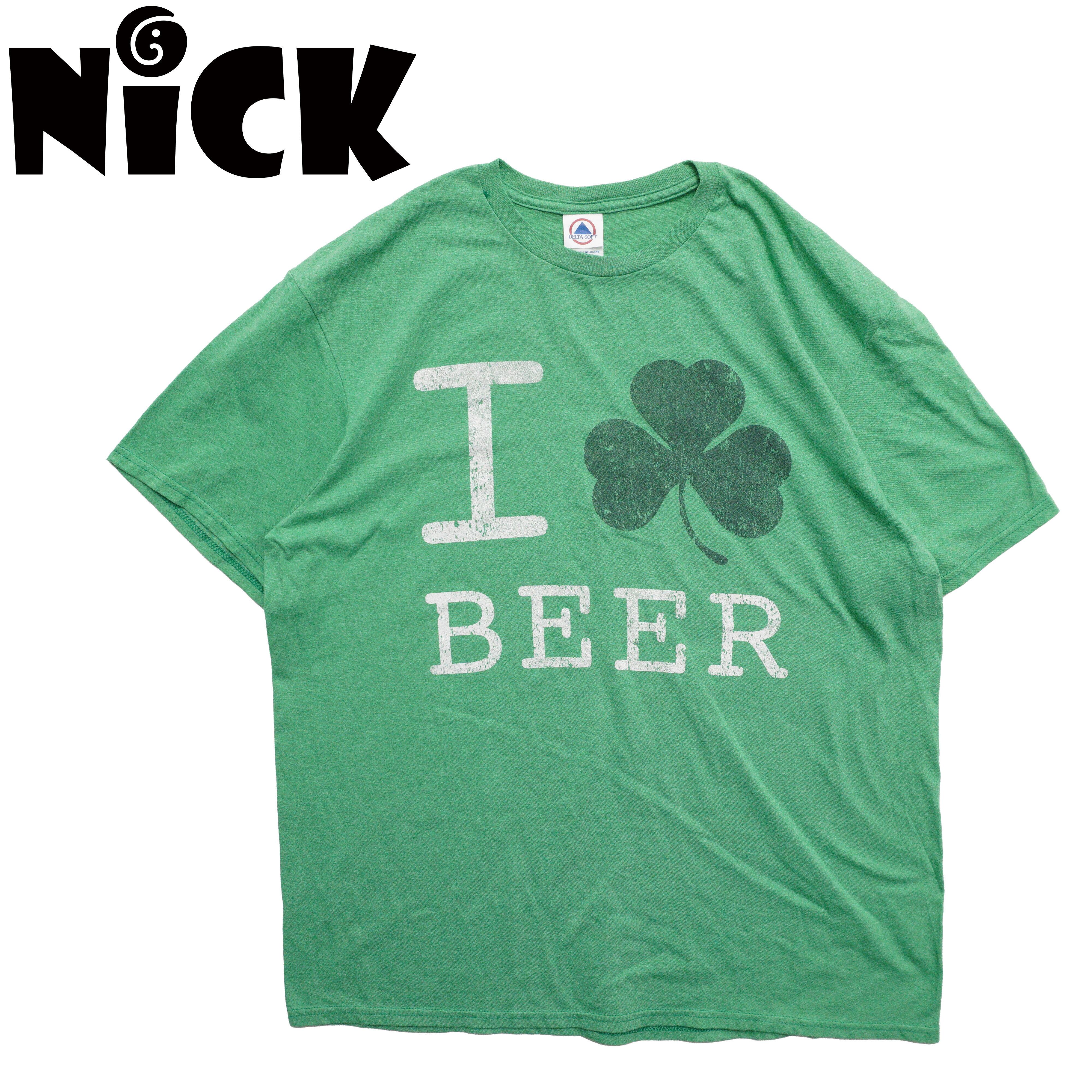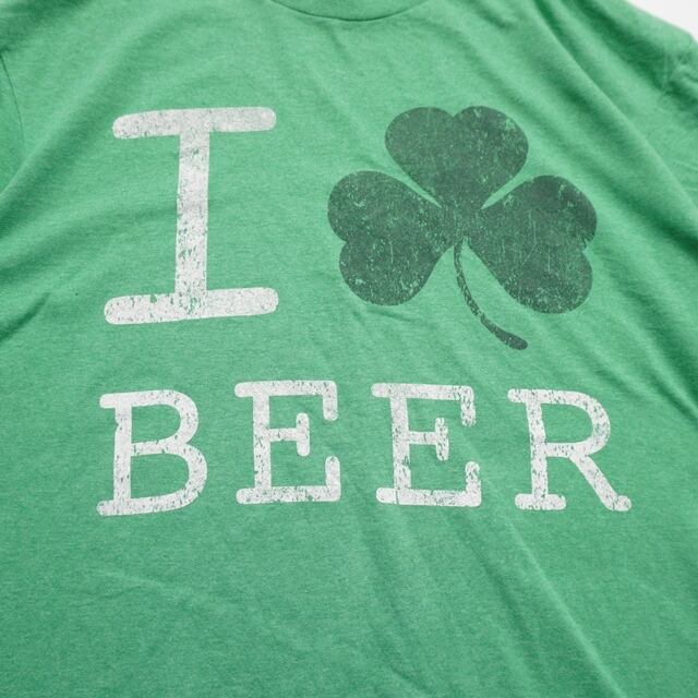 グリーンボディにクローバーと「I ? BEER」のメッセージが映える一枚。シンプルでキャッチーなデザイン。