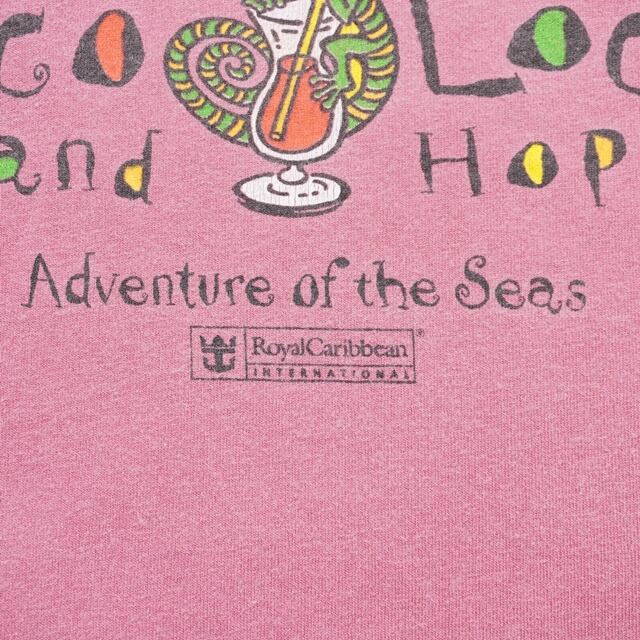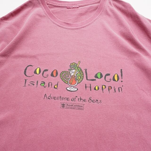 ピンクボディに「Coco Loco Island Hoppin'」のカクテル×トカゲデザインが映える一枚。南国感あるポップな仕上がり。