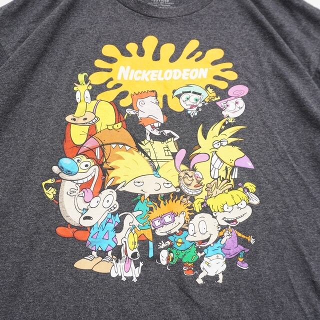ニコロデオン プリントTシャツ グレー キャラクターデザイン アニメ グラフィック