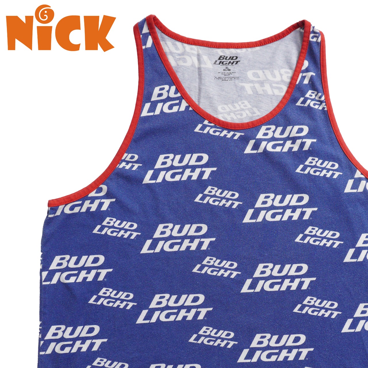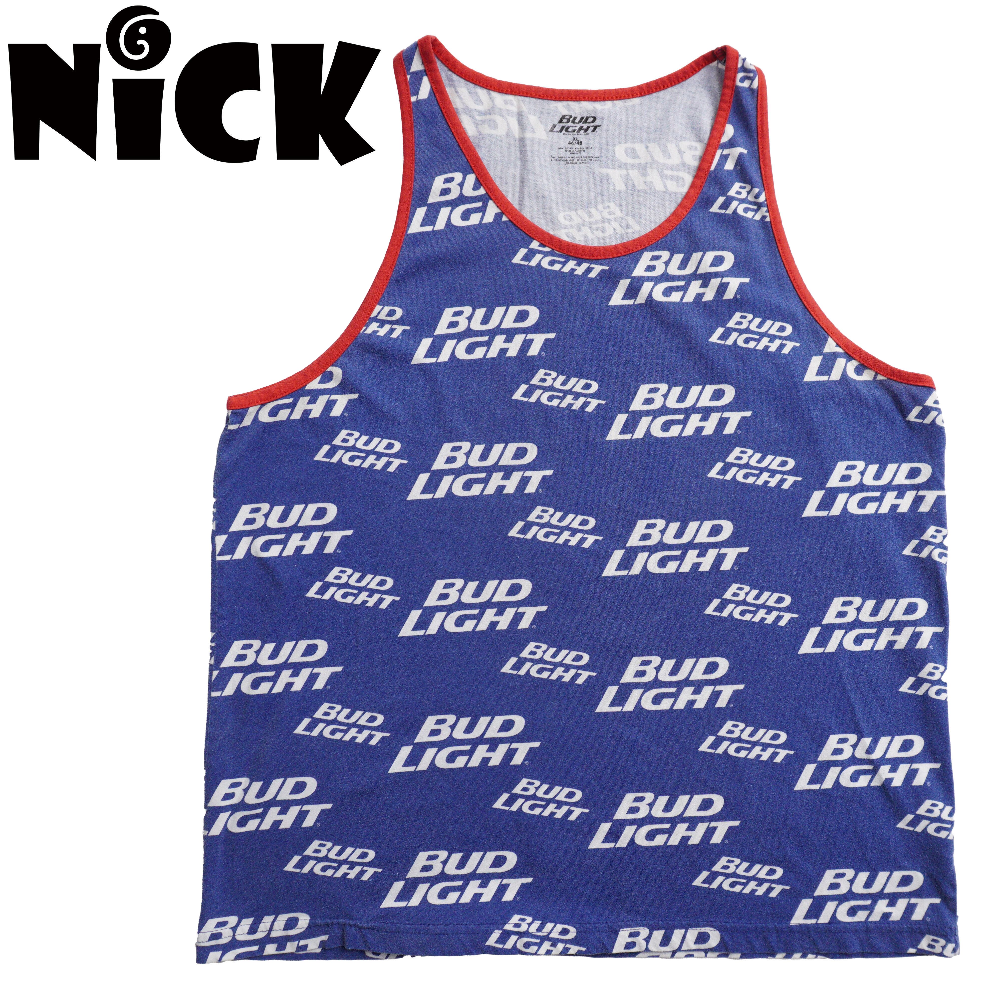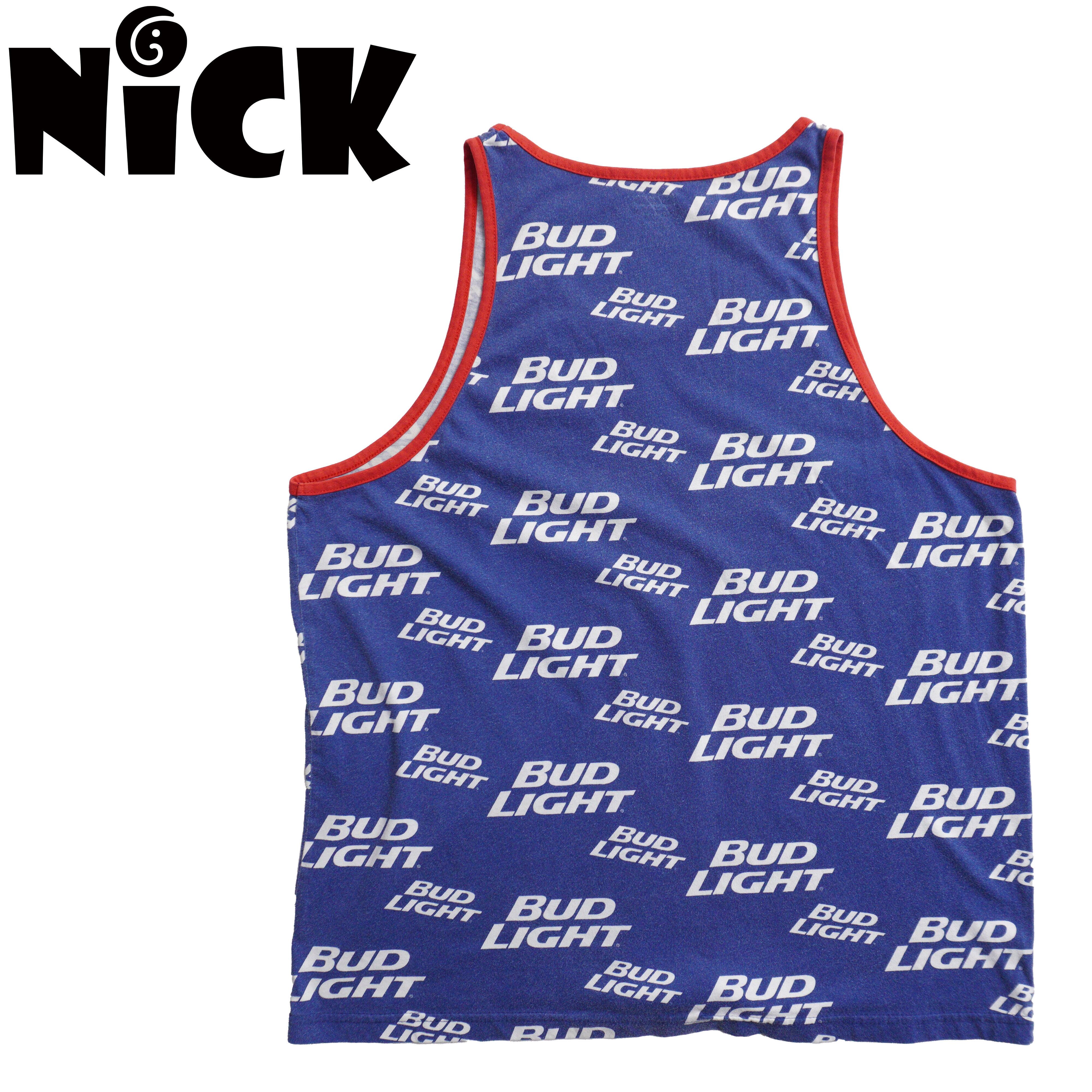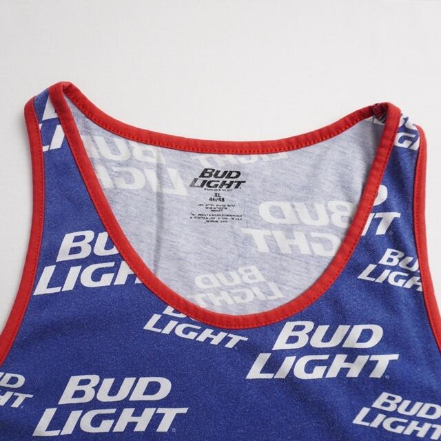 バドライト 総柄ロゴ タンクトップ ブルー レッド ビールプリント ノースリーブ
