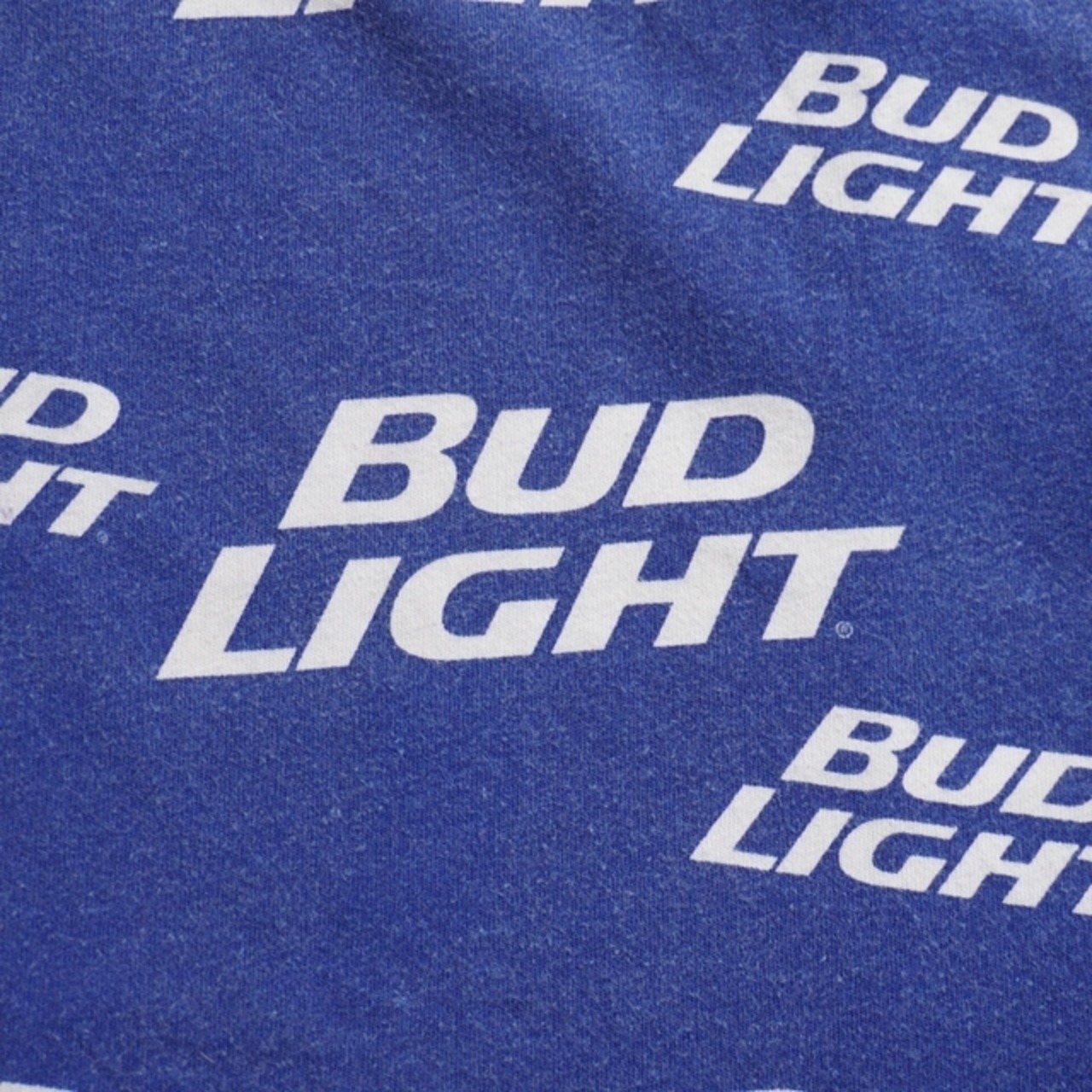 ブルーボディにBUD LIGHTの総柄ロゴが映えるインパクト抜群の一枚。