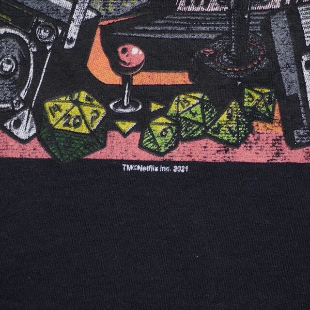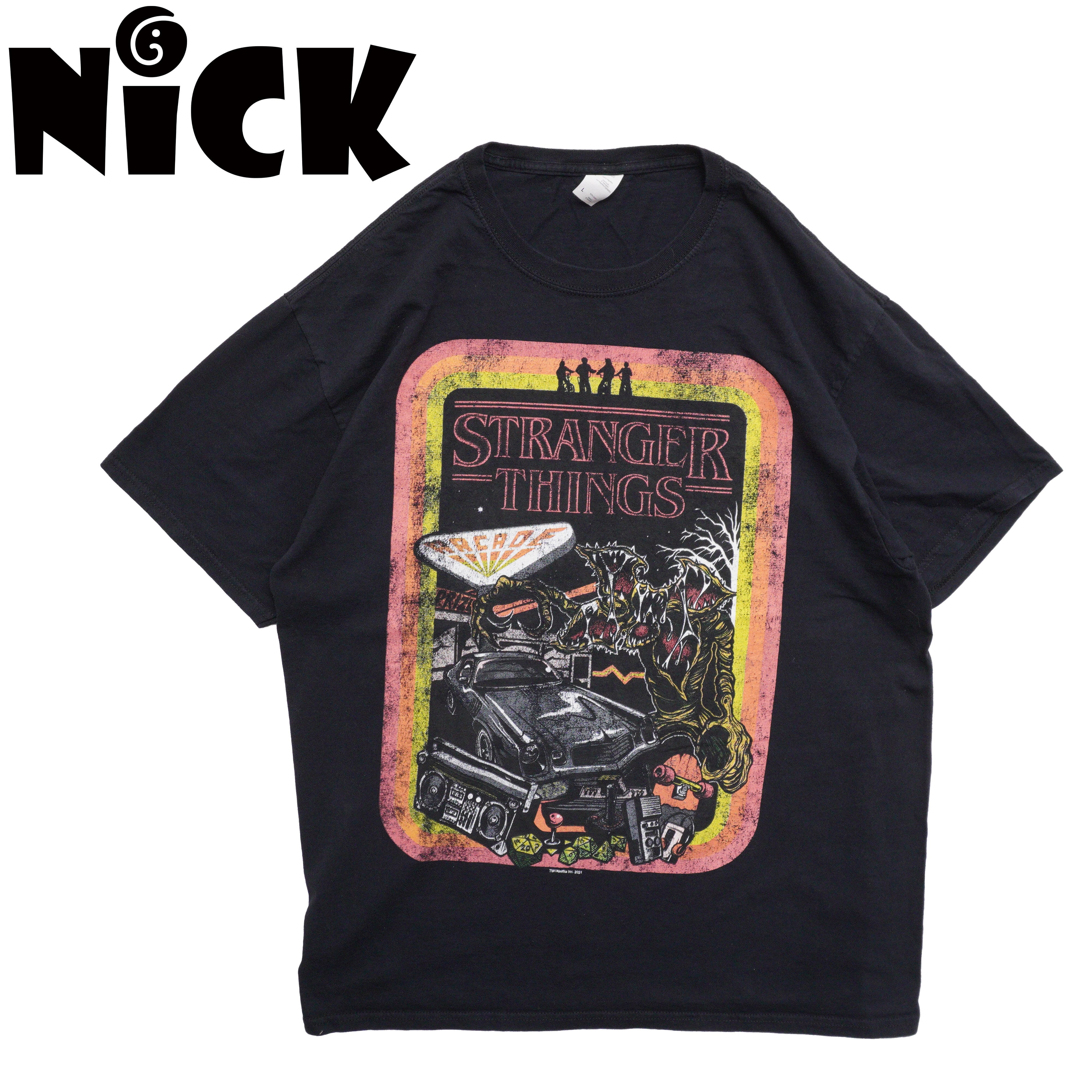 STRANGER THINGS ブラック グラフィックプリント 半袖Tシャツ 海外ドラマT Lサイズ