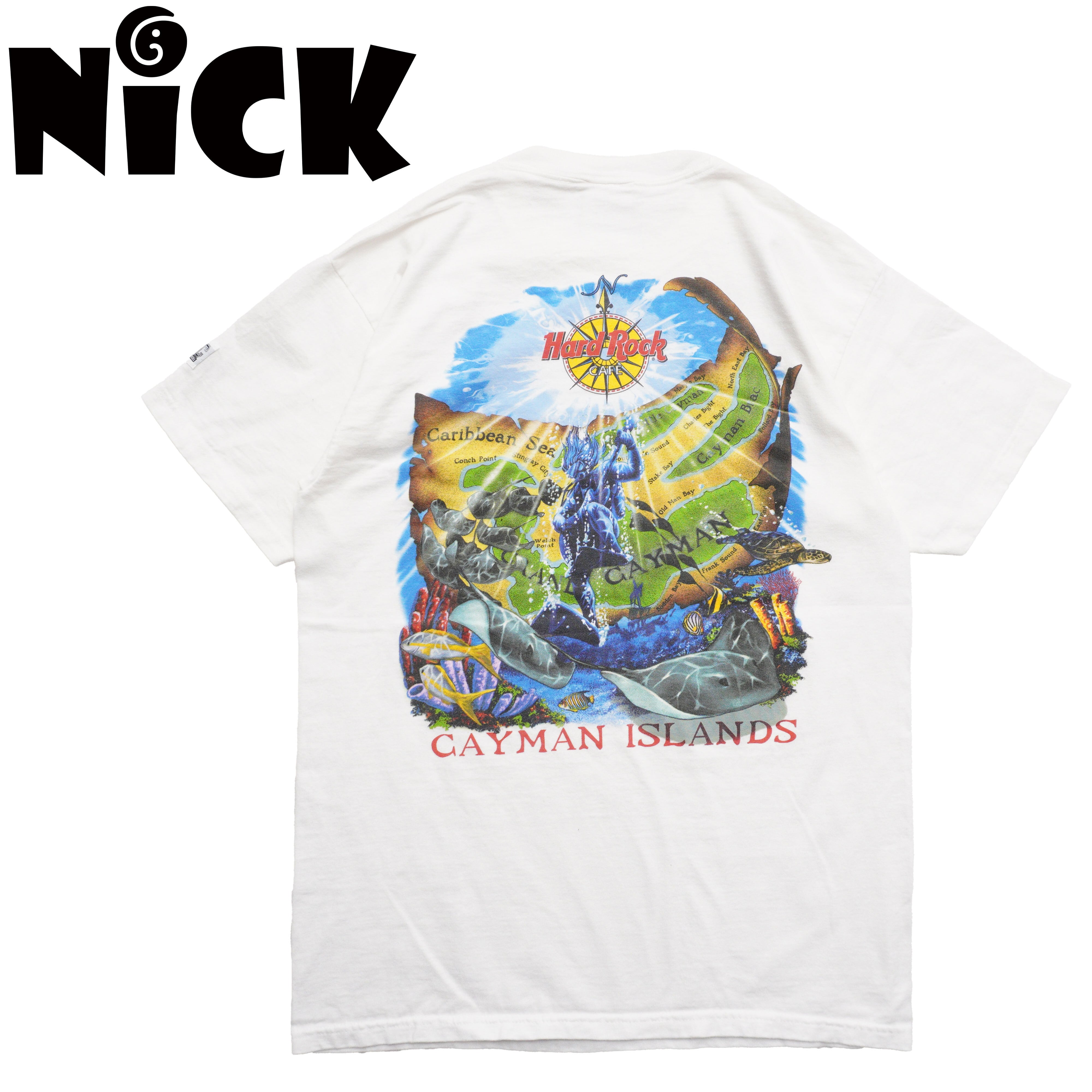 Hard Rock CafeのCAYMAN ISLANDSデザインTシャツ。両面プリントでしっかり主張のある1枚。