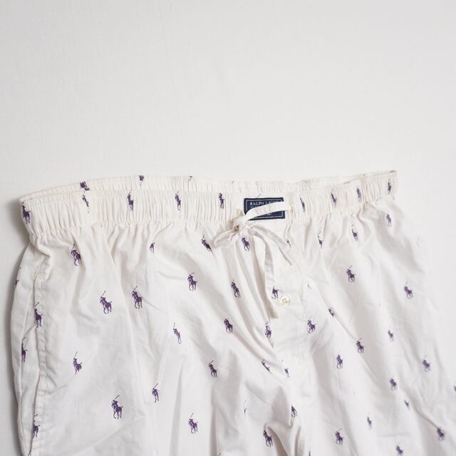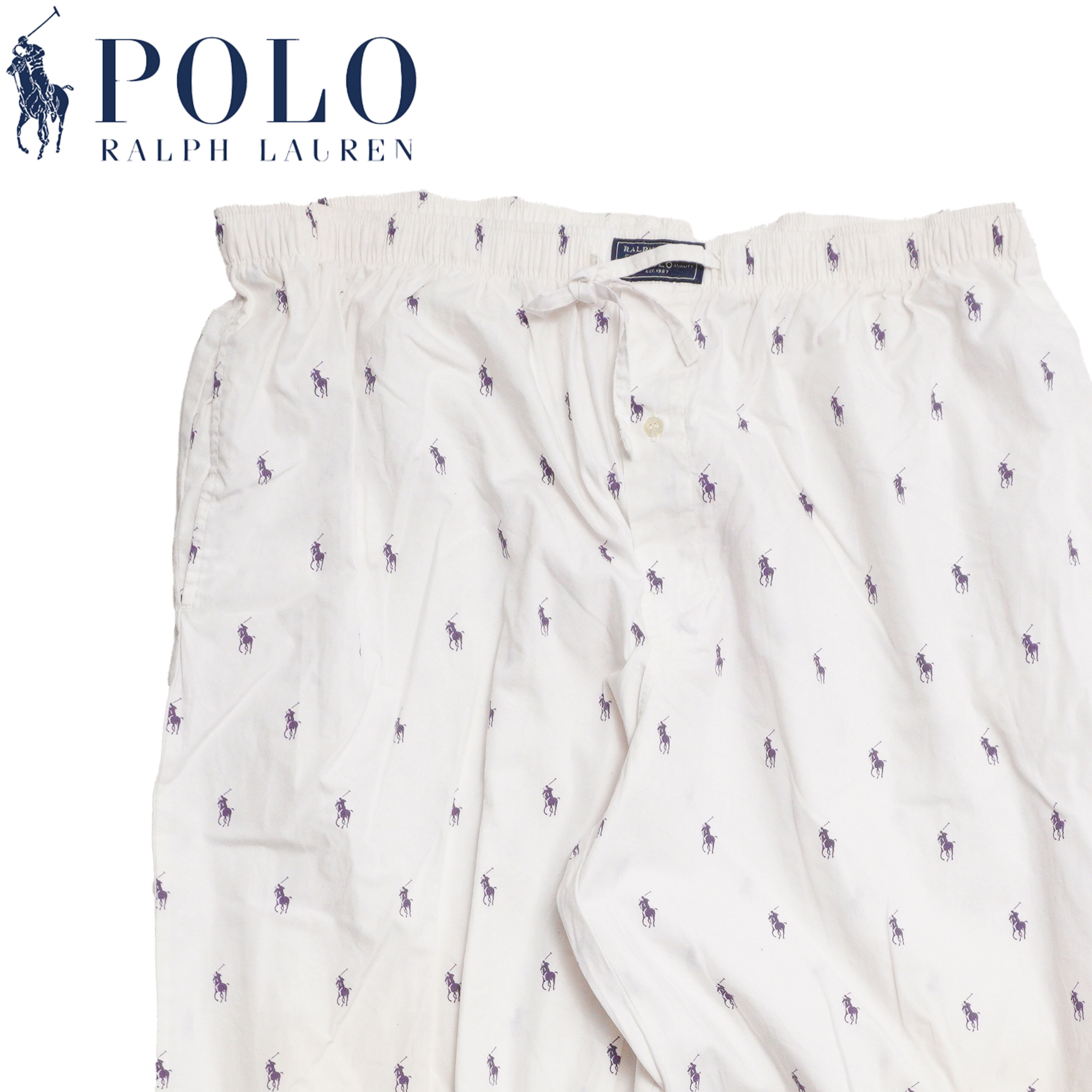 ラルフローレン ホワイト パープル ポニー総柄 イージーパンツ XL コットン