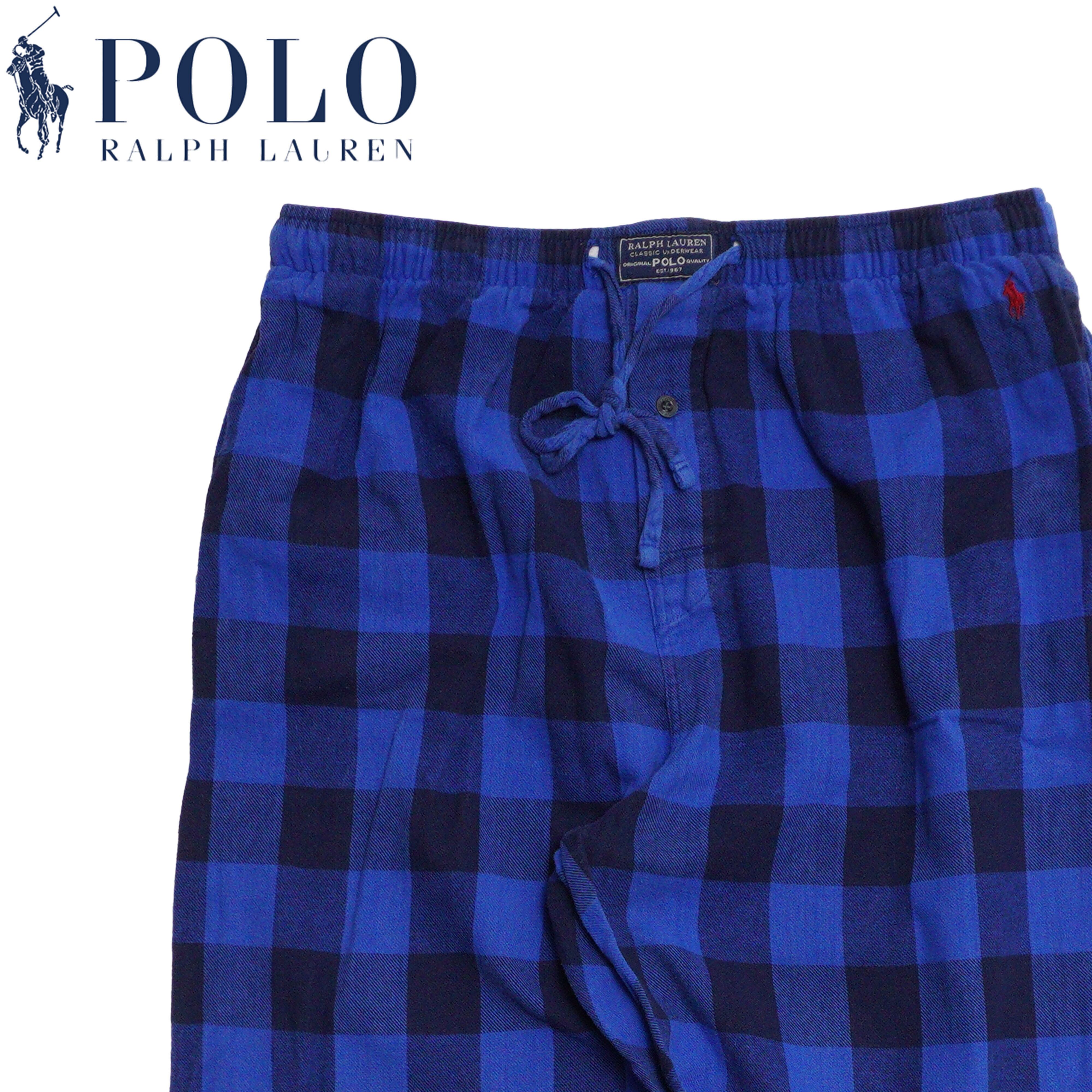 ラルフローレン ブルー ブラック バッファローチェック イージーパンツ M コットン