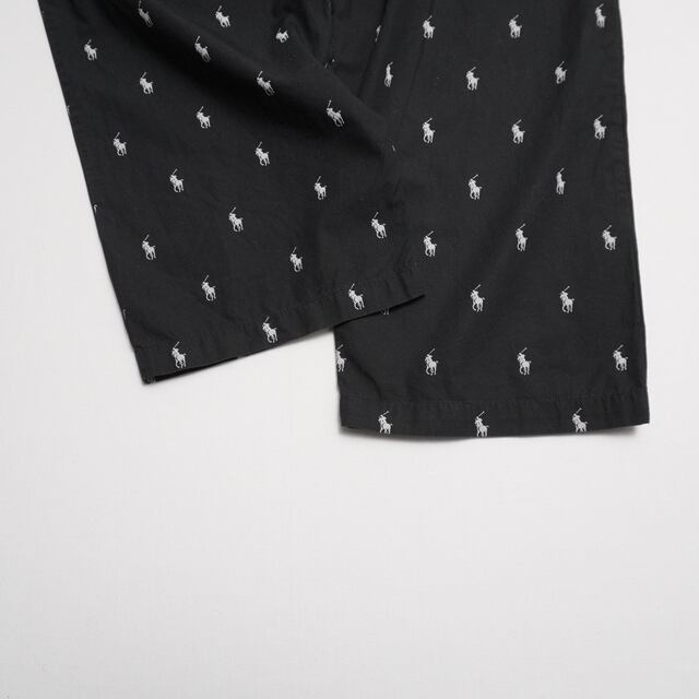 ブラックボディにポロモチーフの総柄が映えるラルフらしい一本。コットン素材で軽く履き心地の良いイージーパンツです。