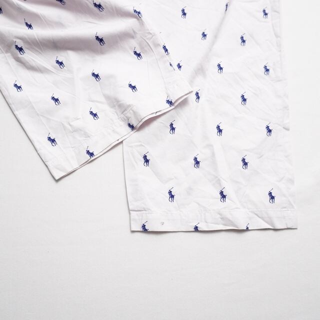 ホワイトボディにネイビーのポロ総柄が映える定番人気デザイン。ウエストロゴ入りでラルフらしさも◎。