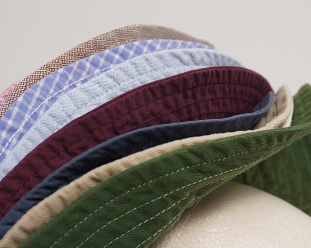 Polo Ralph Lauren のシャツ生地を使用して製作された、爽やかな印象のリメイクバケットハット。