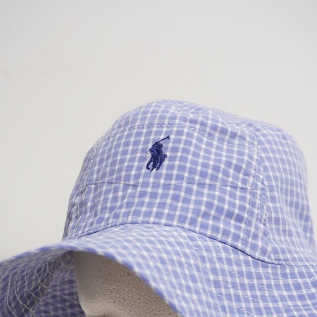 Polo Ralph Lauren リメイク バケットハット チェックブルー ワンポイントロゴ フリーサイズ